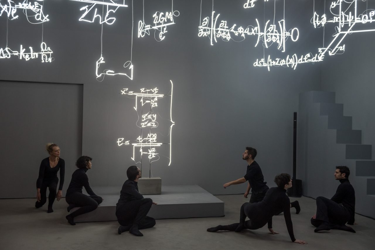 Per “EX3” «Andrea Galvani, che collabora da anni con scienziati e istituzioni scientifiche a livello mondiale, – ha spiegato la Fondazione alla stampa – propone una scelta del suo lavoro più recente intitolato “Instruments for Inquiring into the Wind and the Shaking Earth”, che a febbraio ha vinto il prestigioso premio Audemars Piquet durante ARCO 2019 a Madrid. Il lavoro, sviluppato in collaborazione con fisici dell’Imperial College di Londra, NASA, e UNAM, è composto da una intricata serie di sculture al neon, disegnate per interagire con lo spazio architettonico e il pubblico. Si tratta di equazioni matematiche, che hanno cambiato in modo radicale il nostro modo di vedere e interpretare la realtà e la complessità dell’universo. A Opificio Golinelli l’artista ha scelto di presentare una selezione di dieci sculture, un “paesaggio numerico incandescente” come lui stesso lo definisce. Sospese a diversi metri di altezza lungo il corridoio del corpo architettonico principale, le equazioni accolgono e accompagnano i visitatori nel transito di ingresso della Fondazione, illuminando lo spazio e indicando in maniera intrinseca l’importante ruolo di ponte tra arte scienza e tecnologia che è la mission stessa della Fondazione e dell’attività dell’Area Arti e Scienze, in una visione orientata al futuro della ricerca».