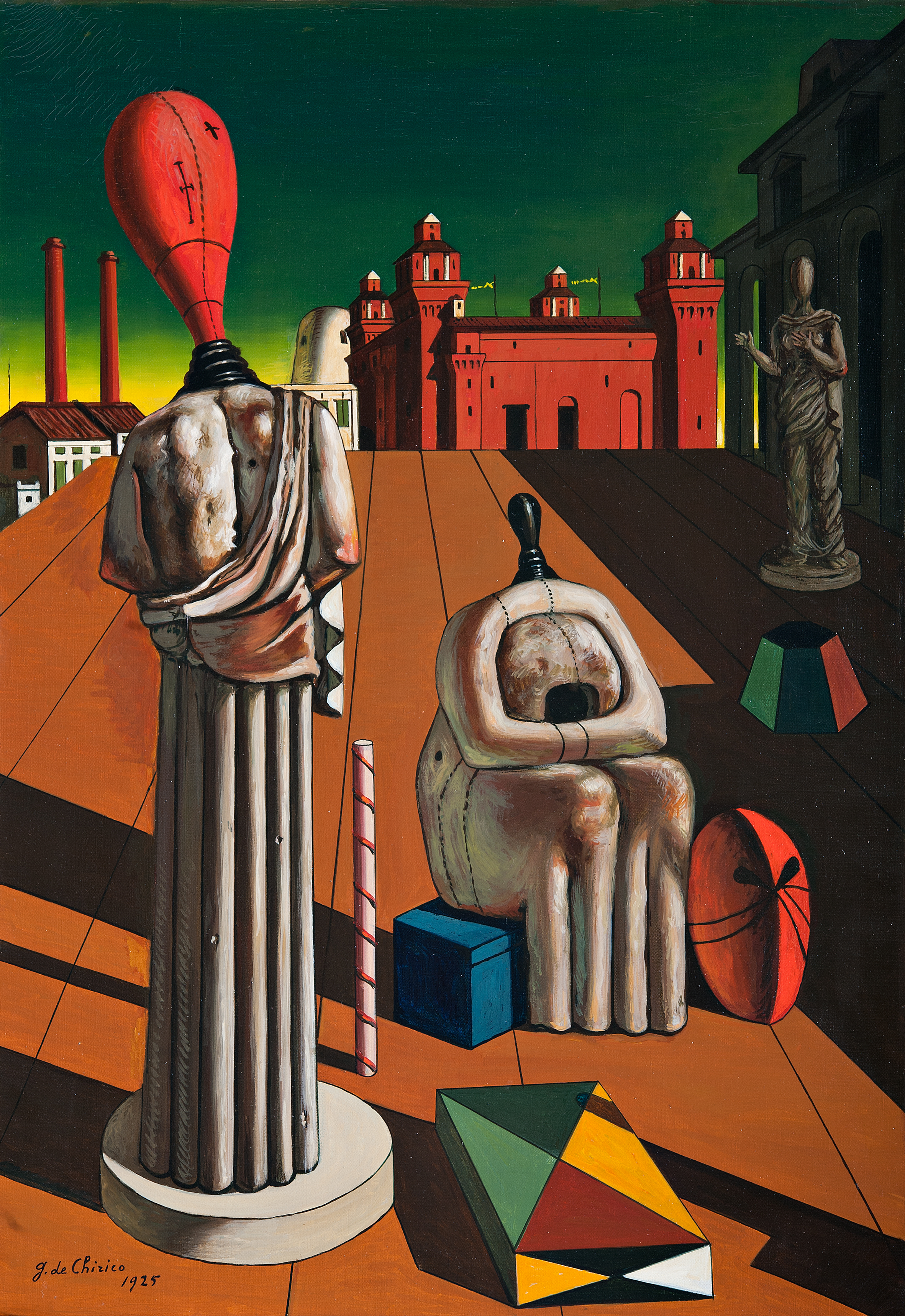 La mostra riunisce a Palazzo Reale più di cento di opere di de Chirico provenienti da musei internazionali tra cui il Metropolitan Museum of Art di New York, la Tate Modern di Londra, il Centre Pompidou di Parigi, The Menil Collection di Houston, il MAC USP di San Paolo in Brasile, da collezioni private e musei italiani come la Pinacoteca di Brera, il Museo del Novecento di Milano, il MART di Rovereto, la GAM di Torino, la Collezione Peggy Guggenheim di Venezia, la Galleria Nazionale d’Arte Moderna e Contemporanea di Roma, la Casa Museo Boschi di Stefano e Villa Necchi Campiglio.