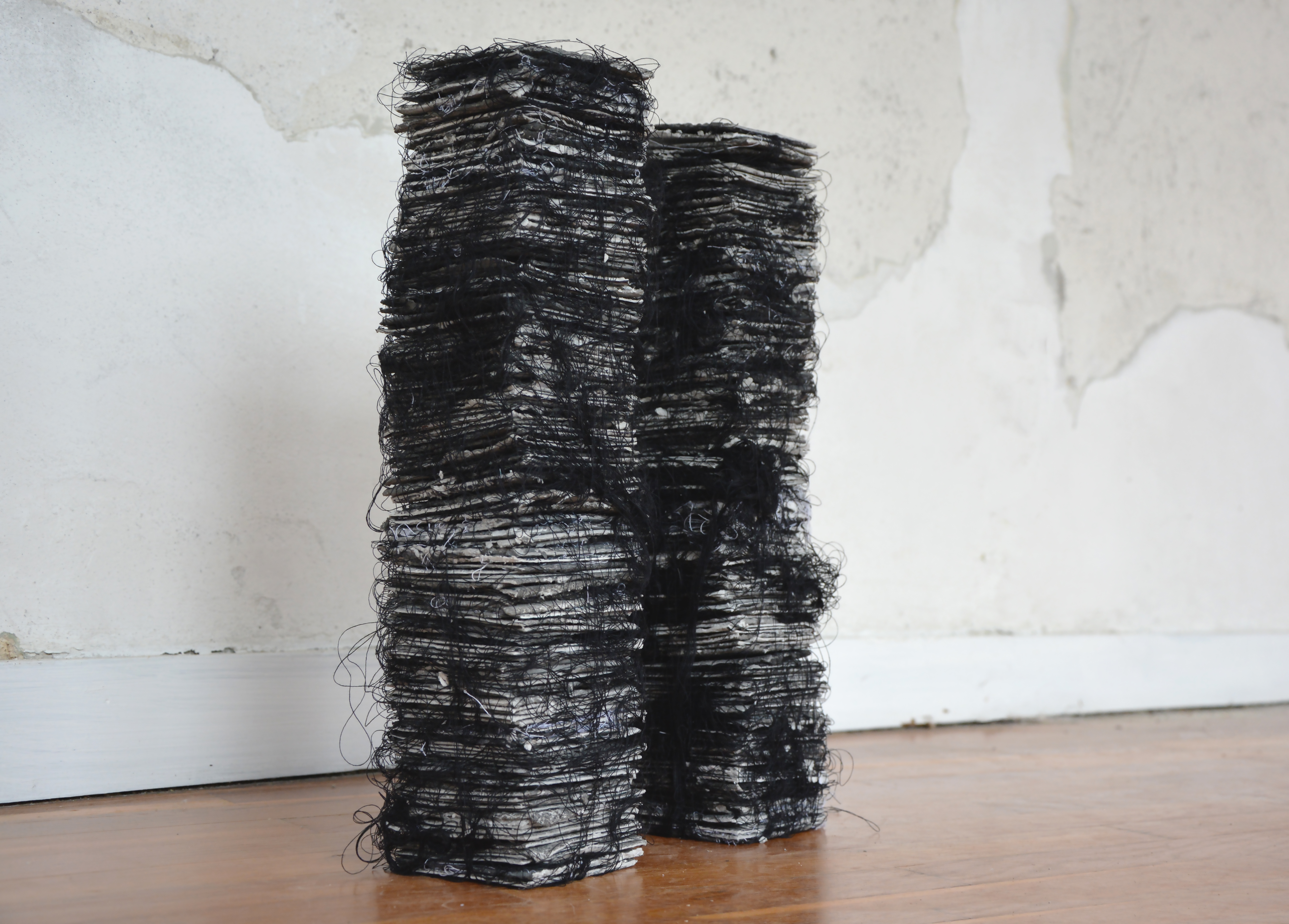 L’accumulo, il deposito e il sedimento caratterizzano significativamente la ricerca artistica di Giulio Locatelli, che ne restituisce visivamente l’idea attraverso l’utilizzo di carta e filo.  Questa indagine prende vita a partire dalla riflessione sul concetto giapponese di “tsundoku” che indica l’abitudine – molto comune soprattutto in epoca recente – ad acquisire libri per poi lasciarli sullo scaffale senza mai leggerli. Ne deriva un insieme di pagine che racchiudono vicende, episodi, esperienze, relazioni intrecciate e coltivate. Cultura. Un accumulo di fogli carichi di segni, graffi, idee, legati concettualmente e rilegati fisicamente tra loro.
