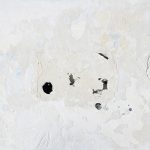 Con gli anni Ottanta la ricerca di Guerzoni partecipa a una più generale riscoperta della sensibilità pittorica, i cui echi risuonano ancora oggi, senza perdere tuttavia mai di vista la poetica degli avanzi, dei ruderi, intesi come monumento di un tempo risalente, alla classicità, oppure a un passato più vicino, anche autobiografico (fatto di incontri con i resti di case e archeologie recenti). In un processo scandito da una pratica fatta di gesti e azioni semplici: grattare, trovare, scavare, stampare, sottrarre, aggiungere, asciugare, sabbiare, strappare. È il caso della serie intitolata Spie, presente in mostra da Monitor con un lavoro particolarmente convincente del 1980 (nella foto in alto). Si tratta di opere in cui, nelle crepe di una lastra di gesso, affiorano visi, o anche soltanto occhi, stampati in polvere di carbone, tratti da pitture antiche.
