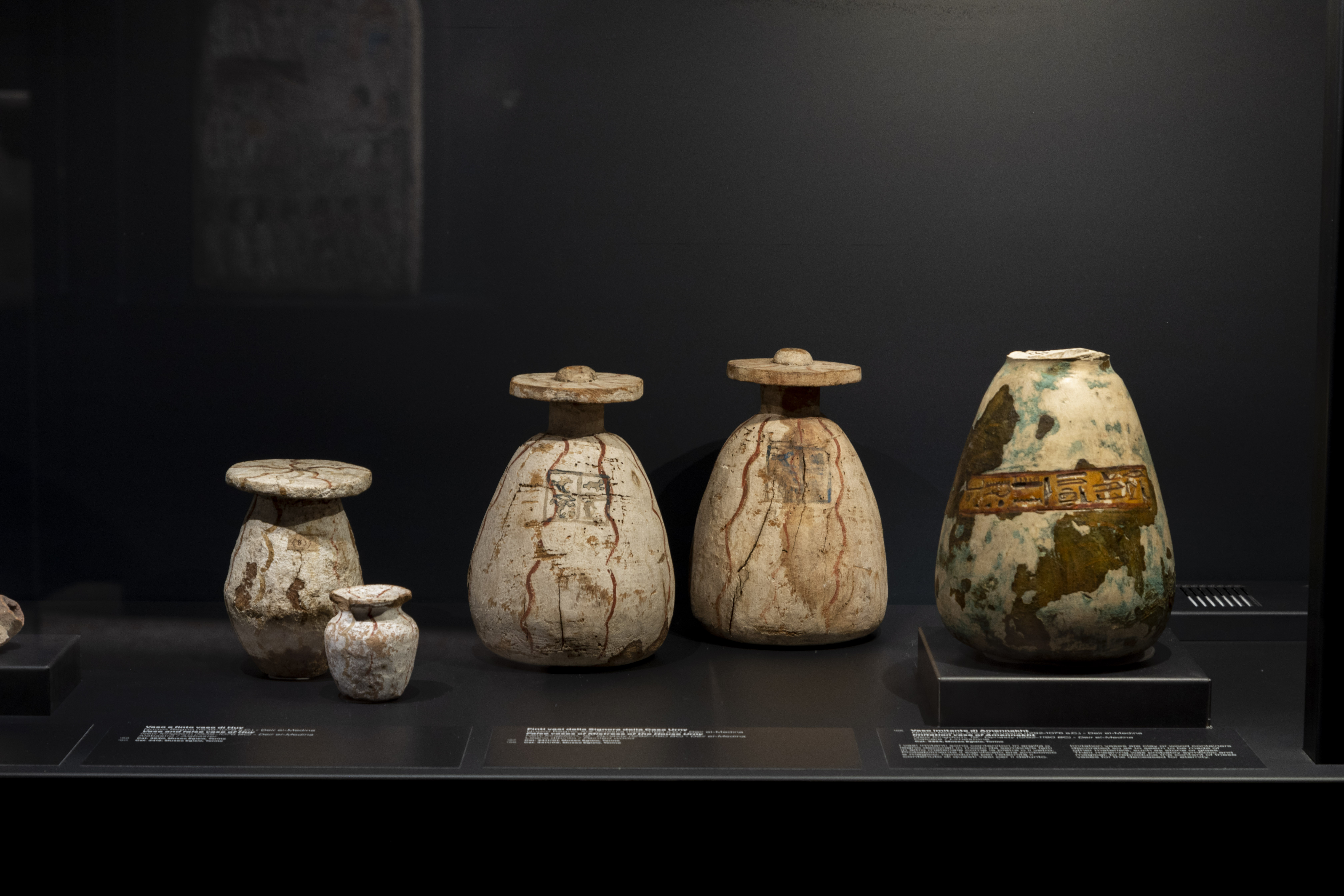 «In mostra – hanno spiegato dalla Basilica Palladiana – sono esposti 180 reperti originali, 160 provenienti dal Museo Egizio e 20 dal Louvre di Parigi, tra i quali statue, sarcofagi, papiri, bassorilievi, stele scolpite e dipinte, anfore, amuleti, strumenti musicali, che permettono di ricostruire la vita quotidiana degli abitanti di Deir el-Medina. Molti dei manufatti quali fusaiole, cesti, spatole venivano usati ogni giorno dalle persone per svolgere le loro attività quotidiane. Di grande interesse si rivelano i numerosi “ostraka”, frammenti di vasi o schegge di pietra utilizzati dagli Egizi per esercitarsi, come su una sorta di tablet contemporanei, nella scrittura e nel disegno. I testi tramandati sono di varia natura: da documenti amministrativi ed economici a scritti di carattere religioso o letterario, poesie d’amore e lettere private. In mostra anche disegni di scorci più intimi, come l’ostrakon che raffigura una scena di allattamento o quello che rappresenta due donne intente a ingioiellarsi all’interno delle loro stanze.
