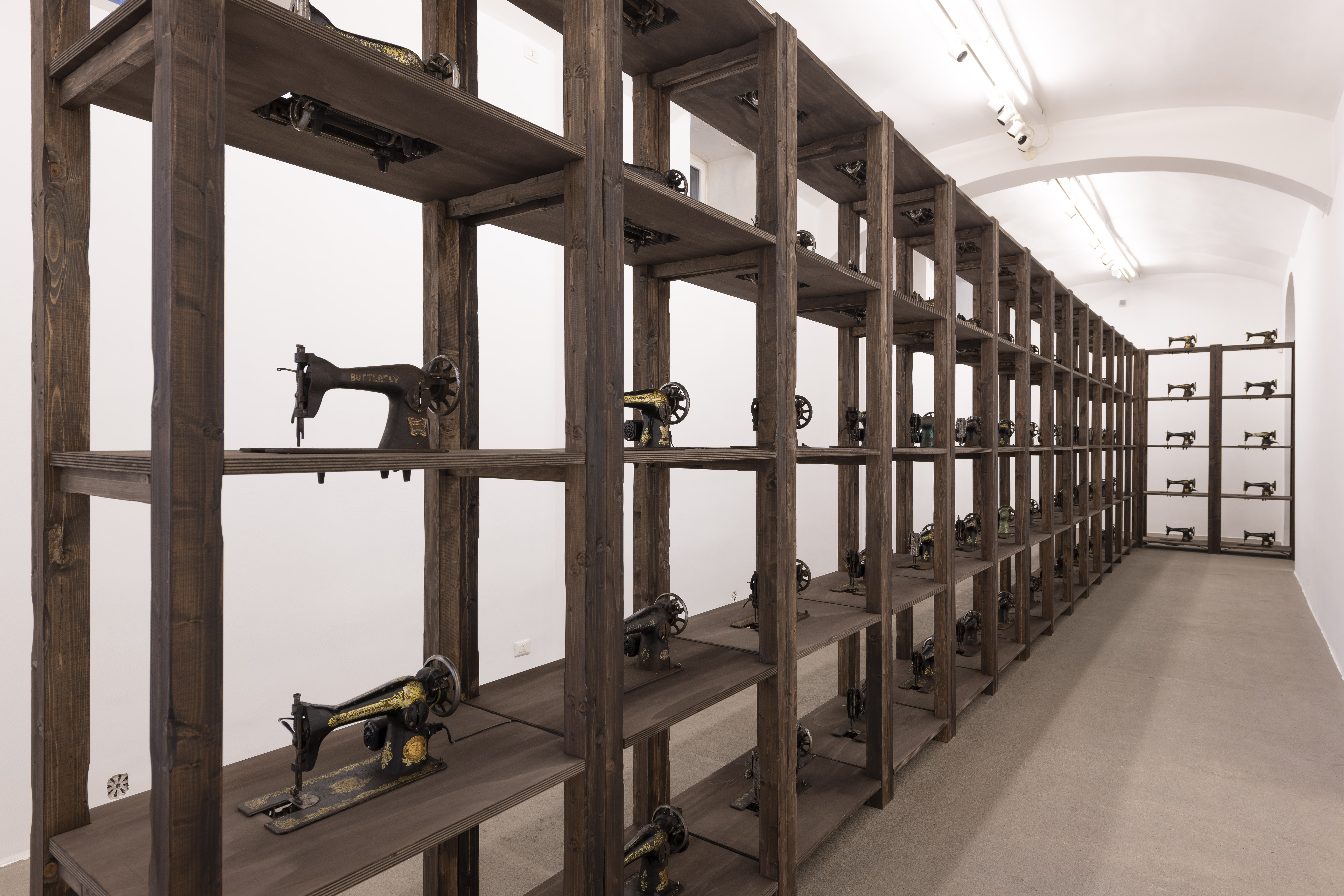 «Per la mostra in Fondazione Giuliani, Mahama ha lavorato a lungo con una rete di “collaboratori”, collezionando quasi duecento macchine da cucito in disuso per dar vita all’installazione su grande scala Capital Corpses I (2014-2019). Queste macchine, legate in maniera intrinseca alla moda e all’industria tessile, simboleggiano metaforicamente un contesto dove l’industria, e ogni ambito ad essa correlato, ignora completamente il processo di decadimento dell’oggetto. L’installazione esplora anche il suono, «una componente importante e spesso trascurata dell’oggetto, che qui crea un’ulteriore connessione o eco con i due film in mostra», ha spiegato la Fondazione.