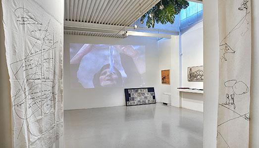 In alto: Maria Lai, Pagine, exhibition view at Studio Stefania Miscetti, 18 gennaio-31 marzo, foto di Simon d’Exéa