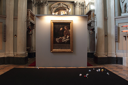 Questo sintetico, ma denso progetto espositivo sottolinea, pertanto, come il rapporto tra arte, liturgia e sacralità sia faccenda particolarmente seria e che pone questioni serie: la rimozione dell’arte sacra contemporanea da buona parte dei manuali di storia dell’arte, il rapporto fra qualità e industria dei manufatti. Ma, soprattutto, che non si deve avere paura di trovare e utilizzare nuovi simboli, nuove forme d’arte, nuovi linguaggi, anche quelli che sembrano poco interessanti a chi evangelizza, ma che sono tuttavia importanti per le persone, perché sanno parlare alle persone e, con la loro libera sensibilità, andare al cuore del messaggio. Si tratta di dipinti e sculture di artisti contemporanei che non sono opere in senso stretto di arte sacra, proprio come l’installazione di Quaglia. Il tema del divino e del sacro è, infatti, ormai uscito dalle chiese per diventare luogo dove gli artisti si confrontano, attraverso la sola mediazione dell’immagine, con il mistero della vita e della morte. Restituendoci dei capolavori della storia dell’arte che testimoniano l’implicita, inconscia, talvolta persino “sacrilega” religiosità dell’arte contemporanea. (Cesare Biasini Selvaggi)