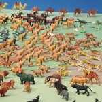 Su questa stessa tematica è incentrata l’importante installazione Zoo del 1979, messa a punto da Alighiero Boetti con i figli Agata e Matteo, e allestita unicamente nello studio di Roma. Spesso pubblicata, ma mai finora riproposta, all’epoca documentata dalle fotografie di Giorgio Colombo, l’installazione – una sorta di assemblea di animali che vide i tre dedicarsi alla sua costruzione per alcuni mesi – è riproposta adattandola allo spazio della galleria, utilizzando un tappeto afgano sul quale sedersi e osservare gli animaletti dall’alto, spostando inevitabilmente il punto di vista sull’opera e il ruolo dello spettatore invitato al suo completamento, e impiegando gli stessi soggetti in plastica adoperati da Alighiero Boetti e dai suoi figli. Tali oggetti sono disposti secondo la classica concezione boettiana del raggruppamento per genere, teso anche alla definizione dell’area geografica di appartenenza, come l’artista stesso scrive: “Questi animali portano in sé il ricordo di milioni di loro predecessori e ricordano il tempo, quello antico, lento, anonimo, identico, immobile, invariato”.