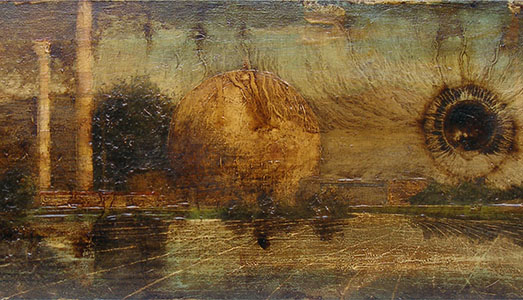 In alto: Jernej Forbici, Grand Tour, Garigliano, 30x80cm, acrilico e olio su tela, 2017
