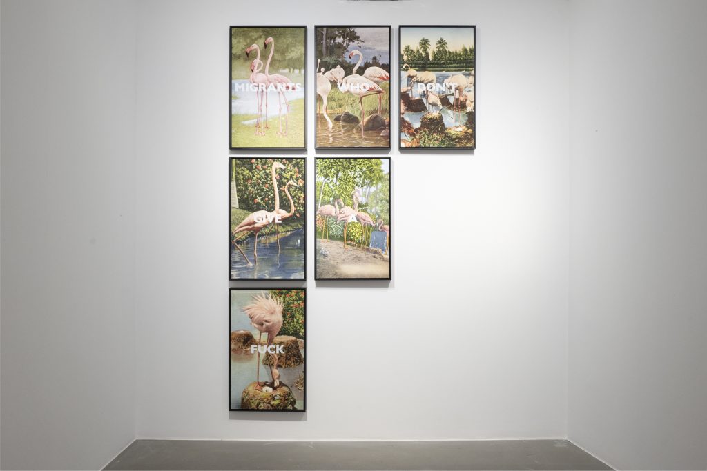 Kiluanji Kia Henda: «In Sardegna si percepisce un’inquietante immagine del Mediterraneo di oggi, diventato una frontiera, non più un ponte tra differenti mondi, lingue e cultura. Il Mediterraneo oggi è un miraggio di speranza in una nuova vita che conduce alla morte migliaia di persone che tentano di attraversare il mare per raggiungere questo miraggio. Questo è il motivo per cui evoco il tema della migrazione e del trasferirsi attraverso immagini legate alla zoologia, come i fenicotteri sardi, uccelli con una vita nomade che simboleggiano la migrazione come un fenomeno libero, imprevedibile e universale. Purtroppo si fatica ancora a cogliere che questa inclinazione è presente anche negli esseri umani».