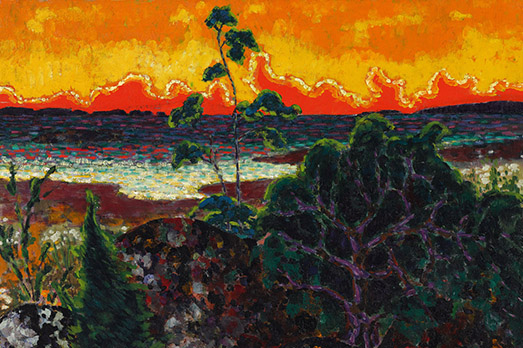 Nato nel 1878, e scomparso prematuramente nel 1925, Konrad Mägi si formò tra San Pietroburgo e Parigi, seguì le correnti fauve ed espressioniste e, oggi, è considerato tra i più influenti artisti del Novecento di area baltica. Uomo fortemente irrequieto, problematico, instabile, fu un punto di riferimento per i modi rappresentativi estoni, venne ostracizzato durante la Seconda Guerra Mondiale e nell’immediato dopoguerra, prima dai comandi tedeschi e poi dalle forze sovietiche, che ordinarono la rimozione di ogni sua opera dai musei, avviando una campagna di denigrazione e osteggiamento durata fino alla seconda metà degli anni ’50. La sua figura fu completamente riabilitata solo nel 1978, quando a cento anni dopo la nascita è stata riconosciuta l’importanza della sua ricerca. (Cesare Biasini Selvaggi)