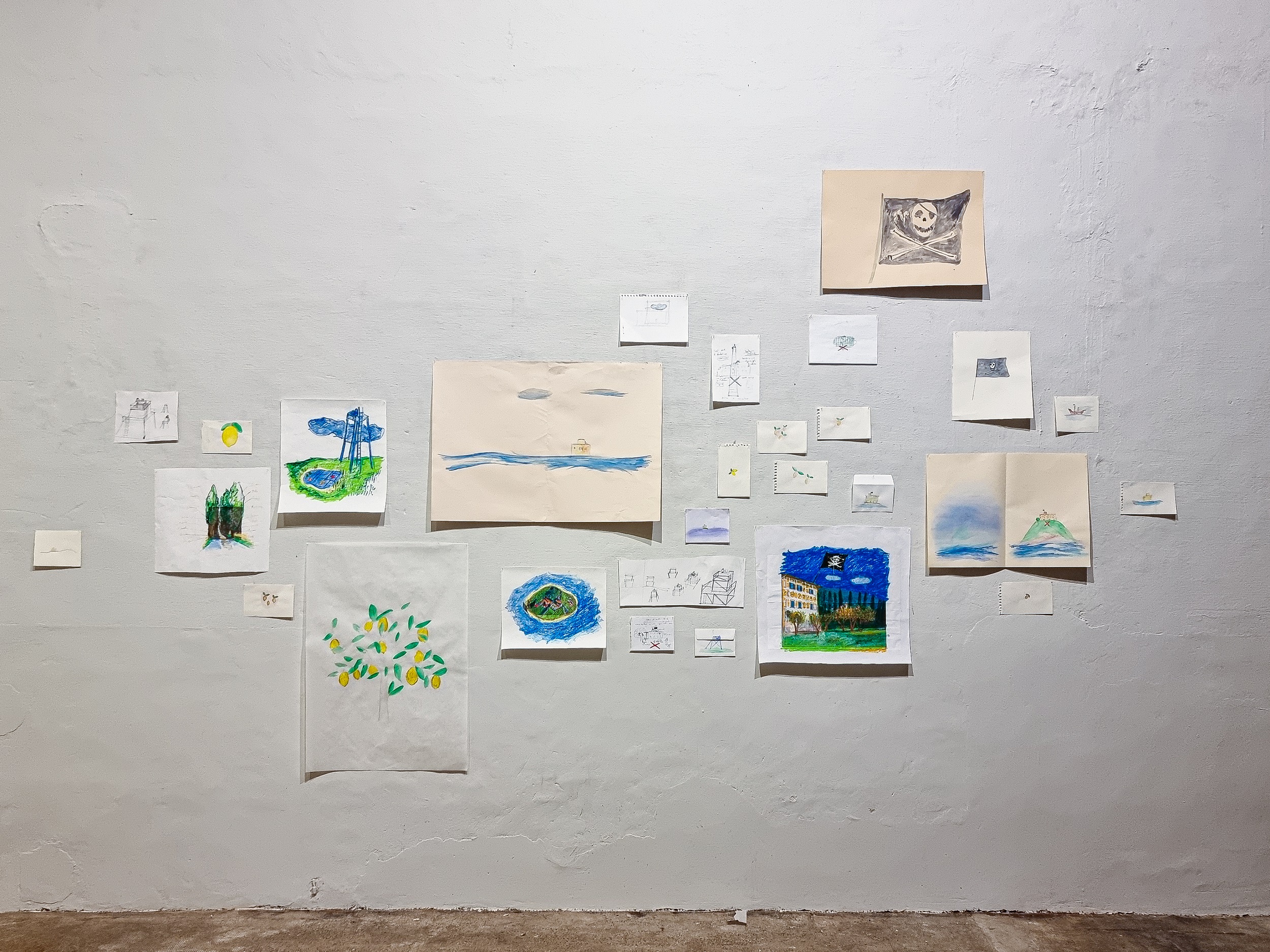 Il pubblico, se lo vorrà, potrà cogliere questo invito al sognare, magari salire quella scala dove da lassù è naturale pensare attraverso punti di vista inusuali. Magari osservare quei disegni posti sulla parete della rimessa e ascoltare o, seduti a quello scrittoio, dando spazio alla propria memoria, alla naturalezza di gesti e sentimenti semplici, immaginare e quasi quasi iniziare a scrivere la propria fiaba. “L’isola dei pirati” è un progetto artistico poetico, dai toni gioiosi e tratti volutamente infantili. Un progetto presentato con quella leggerezza e ingenuità spontanea che caratterizza il loro operare, così come quello spirito di ottimismo contagioso», si legge nel comunicato stampa.