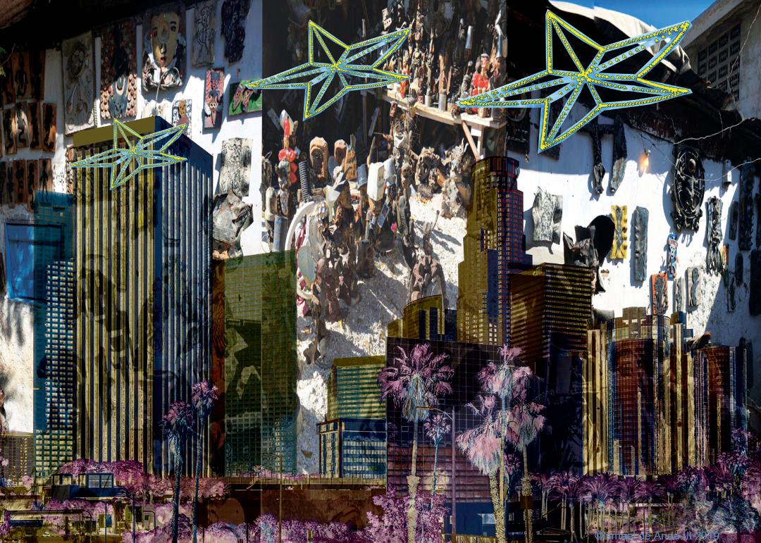 Un corposo programma di performance, workshop e proiezioni ha affiancato le tante installazioni site specific realizzate da artisti di Haiti di cui segnalo Jerry Reginald Chery aka Twoket, Wesner Bazile, Aurelien Moliere, Steevens Simeon, e internazionali; come Tom Bogaert, Louis Henderson, Laura Heyman, Alia Farid, Jean–Louis Huhta, Fabien Clerc; i lavori realizzati a distanza dall’artista californiano Ismael De Anda, in collaborazione con Gina Cunningham e Jim Ricks, che rielaborato i loro lavori fotografici realizzando un quartetto di collage digitali dal titolo, Trance Portal Fierce Love Quartet, che ritrae una sorta di portale concettuale per trascendere le distanze tra le culture ibride che si alimentano tra Haiti, Los Angeles, El Paso, il Texas e Ciudad Juárez e il Messico.