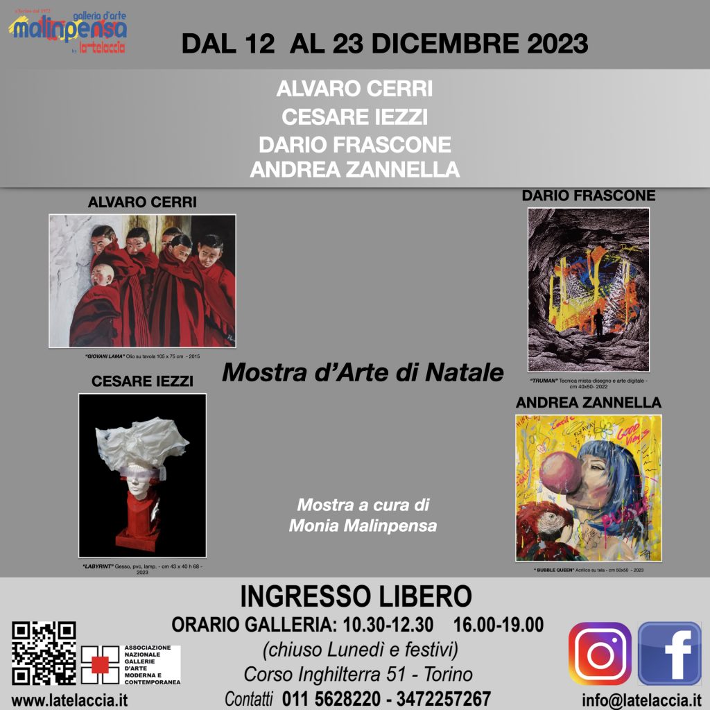 Alvaro Cerri, Cesare Iezzi, Dario Frascone e Andrea Zannella sono i protagonisti della nuova mostra della Galleria Malinpensa By La Telaccia, che inaugura oggi, a Torino, con la curatela di Monia Malinpensa.
