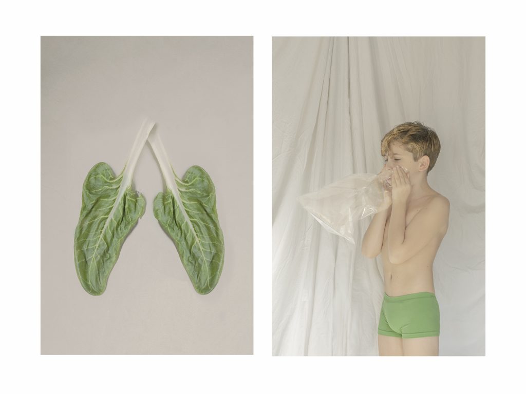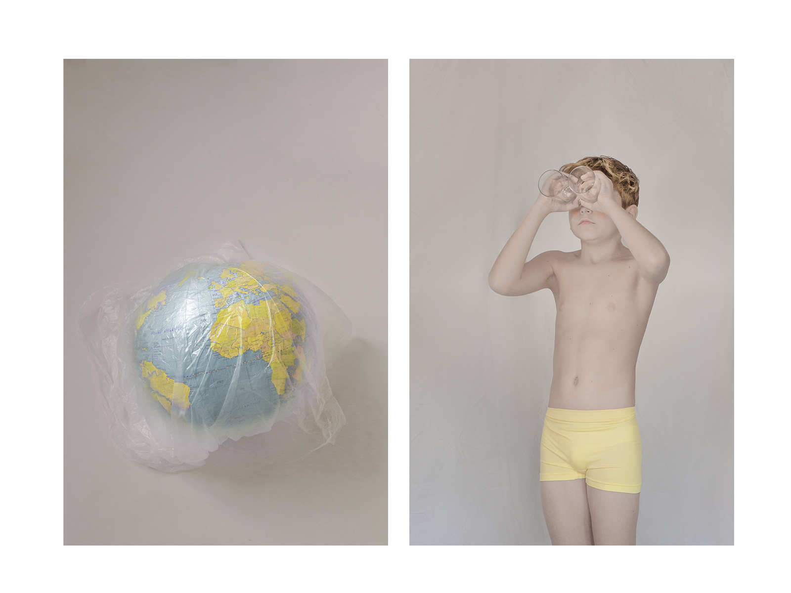 Riproponendo il linguaggio binario del dittico, ho usato da un lato elementi diventati simboli del Covid-19, dall’altro oggetti appartenenti all’universo infantile per associarli, appunto, alle emozioni di un bambino intrappolato con se stesso.
