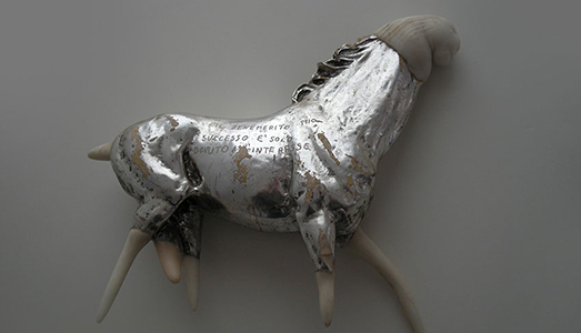 In alto: Franco Losvizzero, Cavallo Argento, 2005, argento e plastica cerosa
