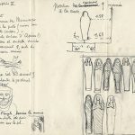 In alto: Victor Loret copia le iscrizioni dalle bende della mummia di Amenofi III, 1898