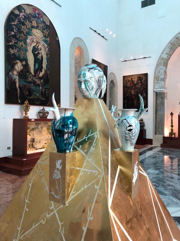 «In questa mostra si condensano in particolare due aspetti della mia ricerca: da un punto di vista tecnico emerge l’unione che ho creato tra la ceramica persiana e la maiolica, un intreccio di tecniche, che ho costantemente messo in relazione con le espressioni artistiche presenti a Monreale. Per quanto riguarda il concept, invece, si riscontra il tentativo di amalgamare simbologie, culti, storia e culture. Questo è molto legato anche alla mia esperienza personale: nato in una cultura persiana, quella mediterranea per me è acquisita successivamente, ma dentro di me con il passare degli anni si sono fuse, trovando una loro omogeneità».
