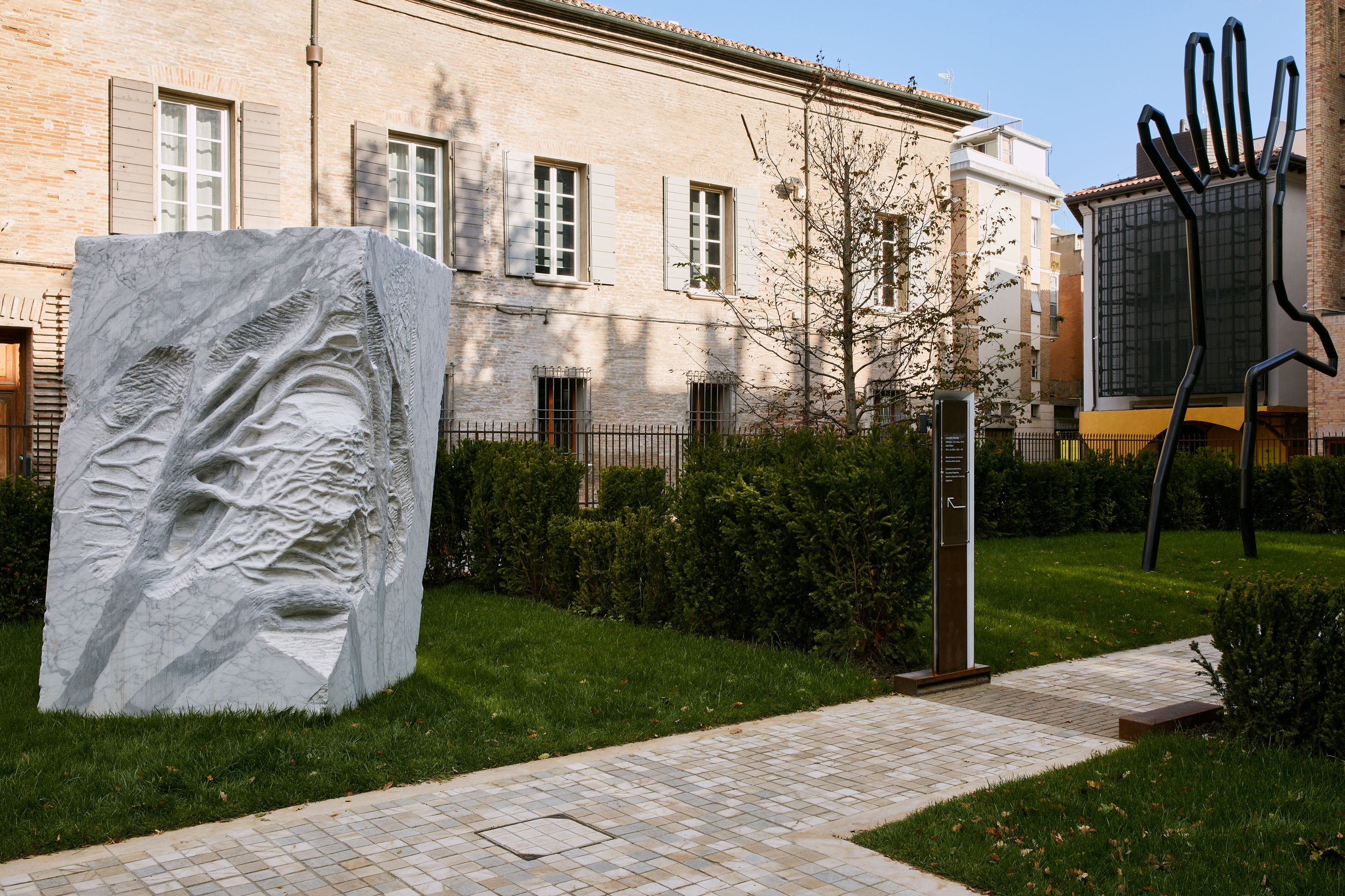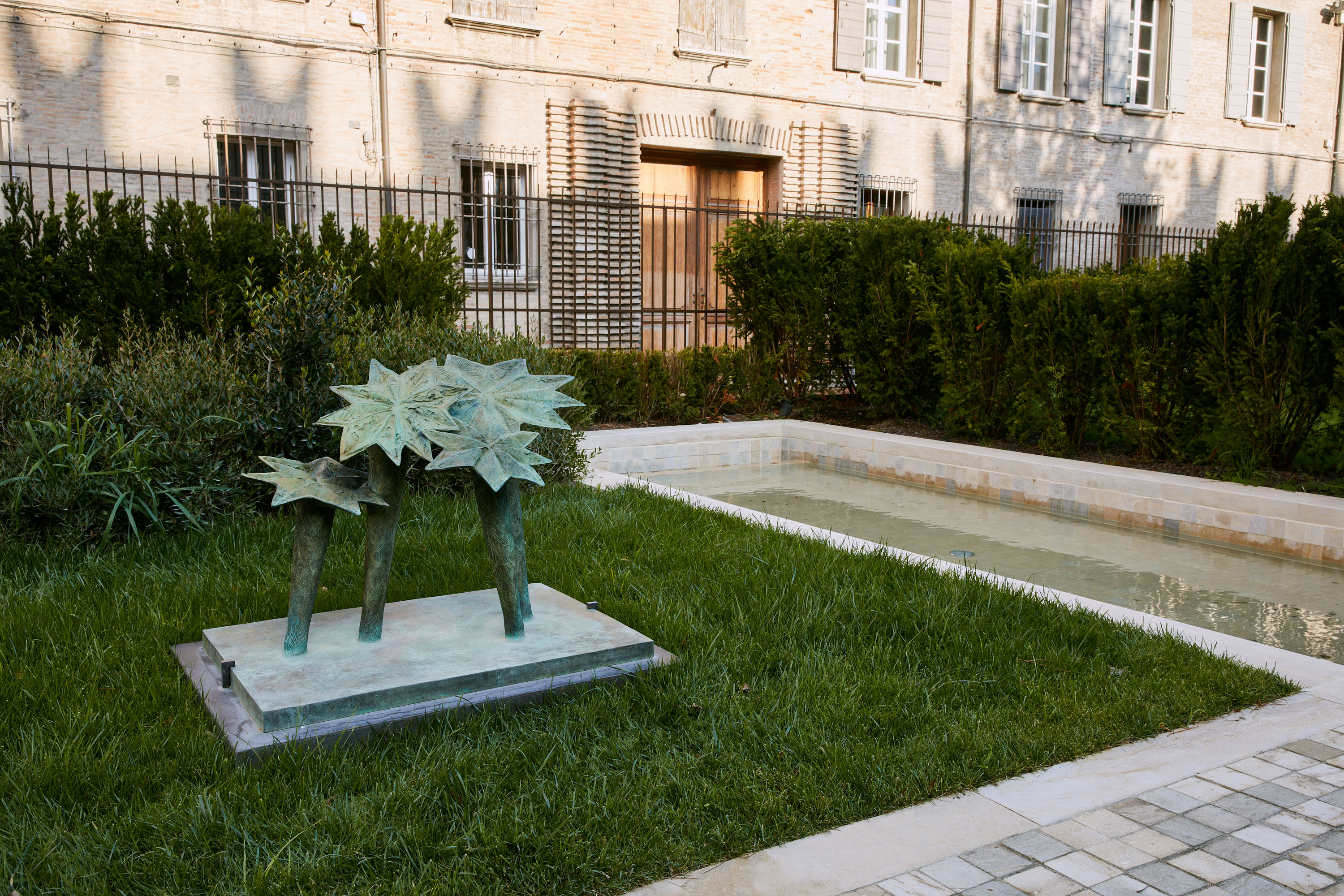 «Un’altra grande realizzazione coinvolge l’area esterna del Part, affacciata sulla Piazza Malatestiana: è aperto infatti al pubblico il Giardino delle Sculture di Rimini, nuova e visionaria sezione a cielo aperto del PART che integra la proposta del museo con uno spazio pubblico en plein air dedicato all’arte del nostro tempo. Concepito come un’estensione del percorso espositivo del PART, il Giardino sarà accessibile anche dall’ esterno gratuitamente. All’interno del perimetro vegetale, che interpreta una versione attuale del tipico giardino all’italiana ed evoca l’idea di rovina nell’intrecciarsi di componente muraria e naturale, il visitatore scopre una selezione di sette sculture d’arte contemporanea allestite in “stanze espositive” all’aperto: le opere appartengono agli artisti Alberto Garutti, Paul Kneale, Giuseppe Penone, Arnaldo Pomodoro, Kiki Smith, Piotr Uklanski e Chen Zhen».