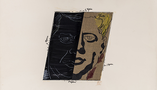 In alto Tacchi Cesare Kennedy, progetto per un quadro, 1966, tecnica mista e collage su carta, cm 70×100