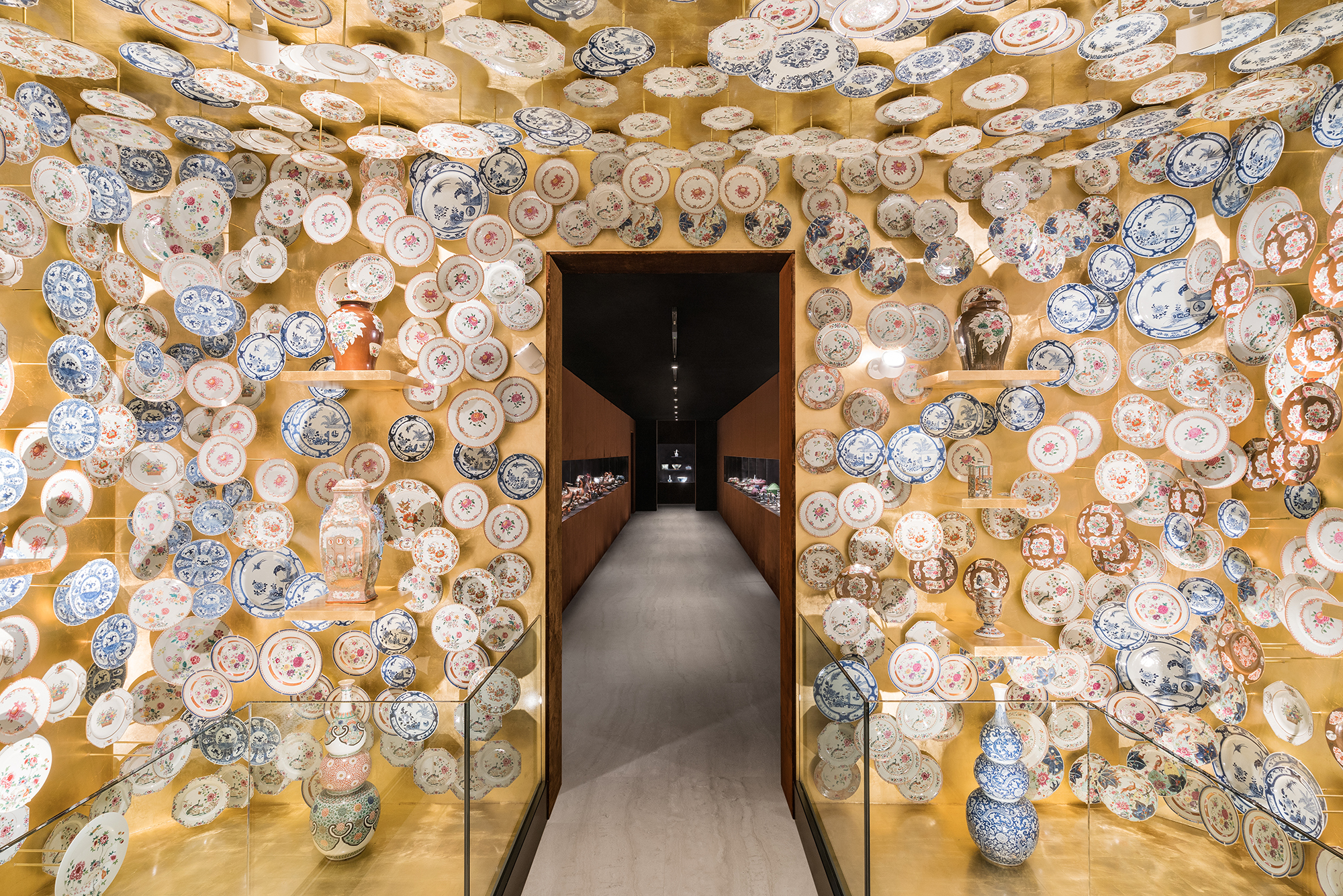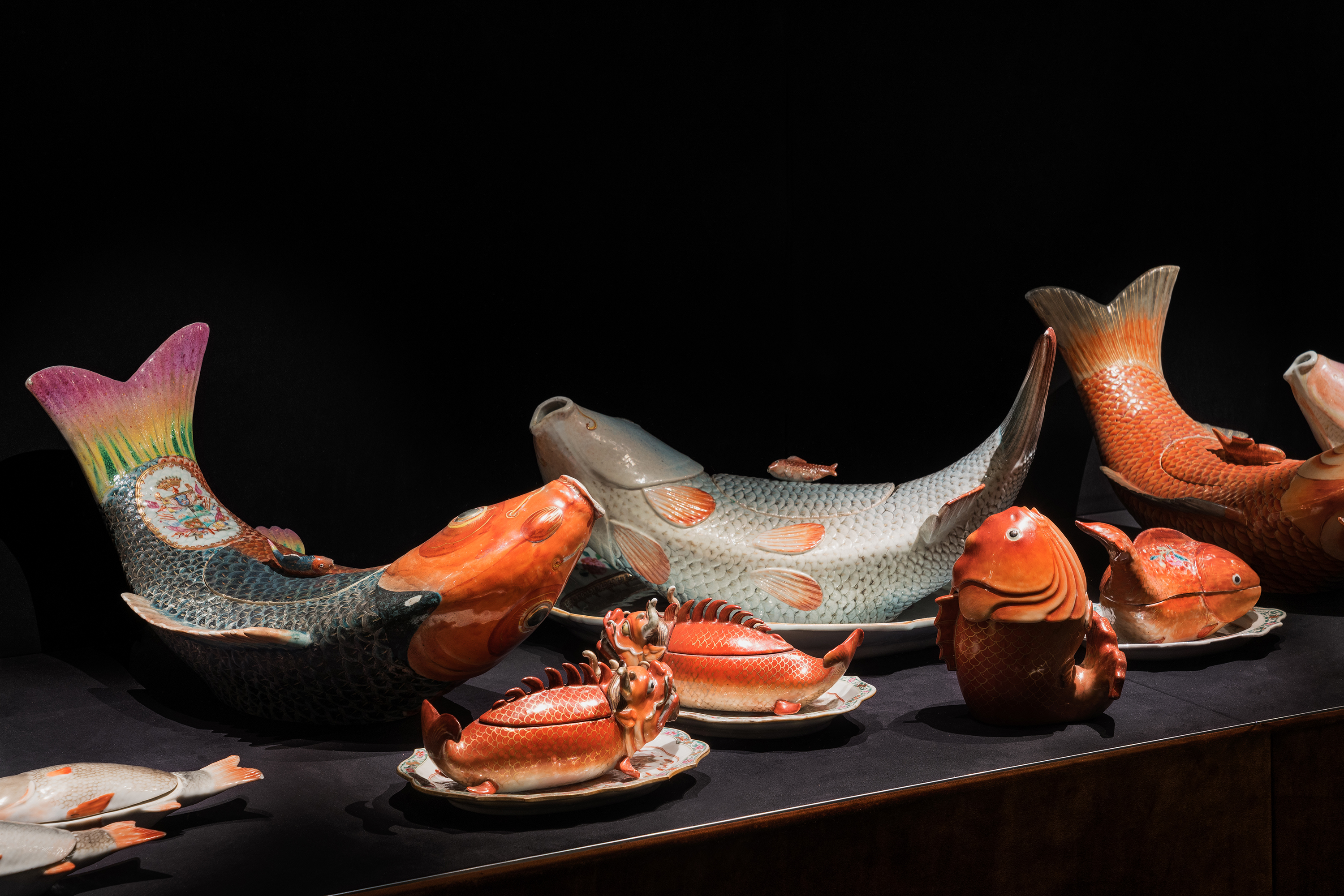 « “The Porcelain Room” unisce esempi di porcellane realizzate tra il XVI e il XIX secolo per diversi mercati, religioni e gruppi sociali. Il progetto dimostra l’efficienza degli artigiani cinesi nel comprendere il gusto e la domanda di ogni segmento di mercato, adattando la loro produzione. Nonostante le ceramiche cinesi fossero conosciute al di fuori della Cina già durante la dinastia Tang (618-907) e avessero raggiunto l’Europa all’inizio del XIV secolo, l’esportazione delle porcellane aumentò considerevolmente raggiungendo ogni regione del mondo solo dopo l’apertura delle rotte marittime verso est da parte dei portoghesi nel 1513. Durante la dinastia Ming (1368-1644) l’attività di esportazione divenne sempre più importante, inizialmente con le affascinanti porcellane celadon e blu smaltate. Quando gli europei iniziarono a commissionare e commerciare le porcellane per esportarle in Occidente, queste divennero i primi prodotti venduti in tutto il mondo», si legge nel comunicato stampa.