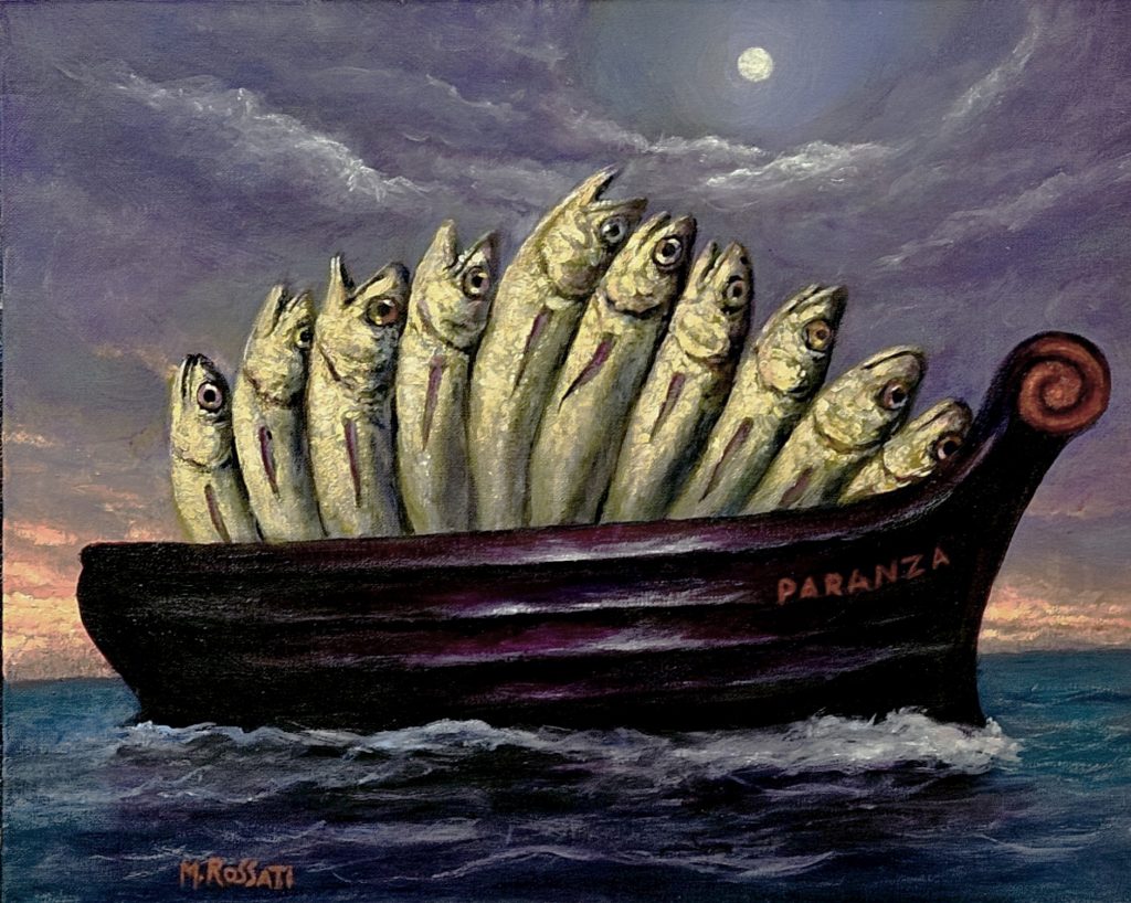 Nei suoi dipinti e disegni, infatti, salta subito agli occhi l’attenta e a volte sofferta esigenza d’uno spessore pittorico basato sulla ricerca del grande mestiere, strumento essenziale per rappresentare la tensione verso i più rarefatti strati della mente, cioè verso quell’”ordine” che era il fondamento della pittura prima dell’esplosione delle ‘avanguardie’ e ‘postavanguardie’ oggi imperanti.