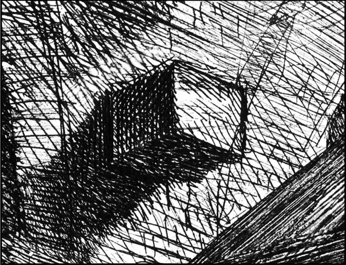 «Partendo da questa analisi, l’artista riprende un lavoro esposto nel 2011 all’Istituto Centrale per la Grafica di Roma, focalizzandosi sui segni incisi da Giovanni Battista Piranesi, (“Le Carceri VIII, XIV”, 1745 circa), Annibale Carracci (“Madonna che allatta il bambino”, 1583 circa) e Luigi Calamatta (“Madonna della Seggiola” di Raffaello, 1863), analizzati attraverso video e scatti fotografici capaci di disvelare la matericità del segno nel rapporto con la lastra di rame».
