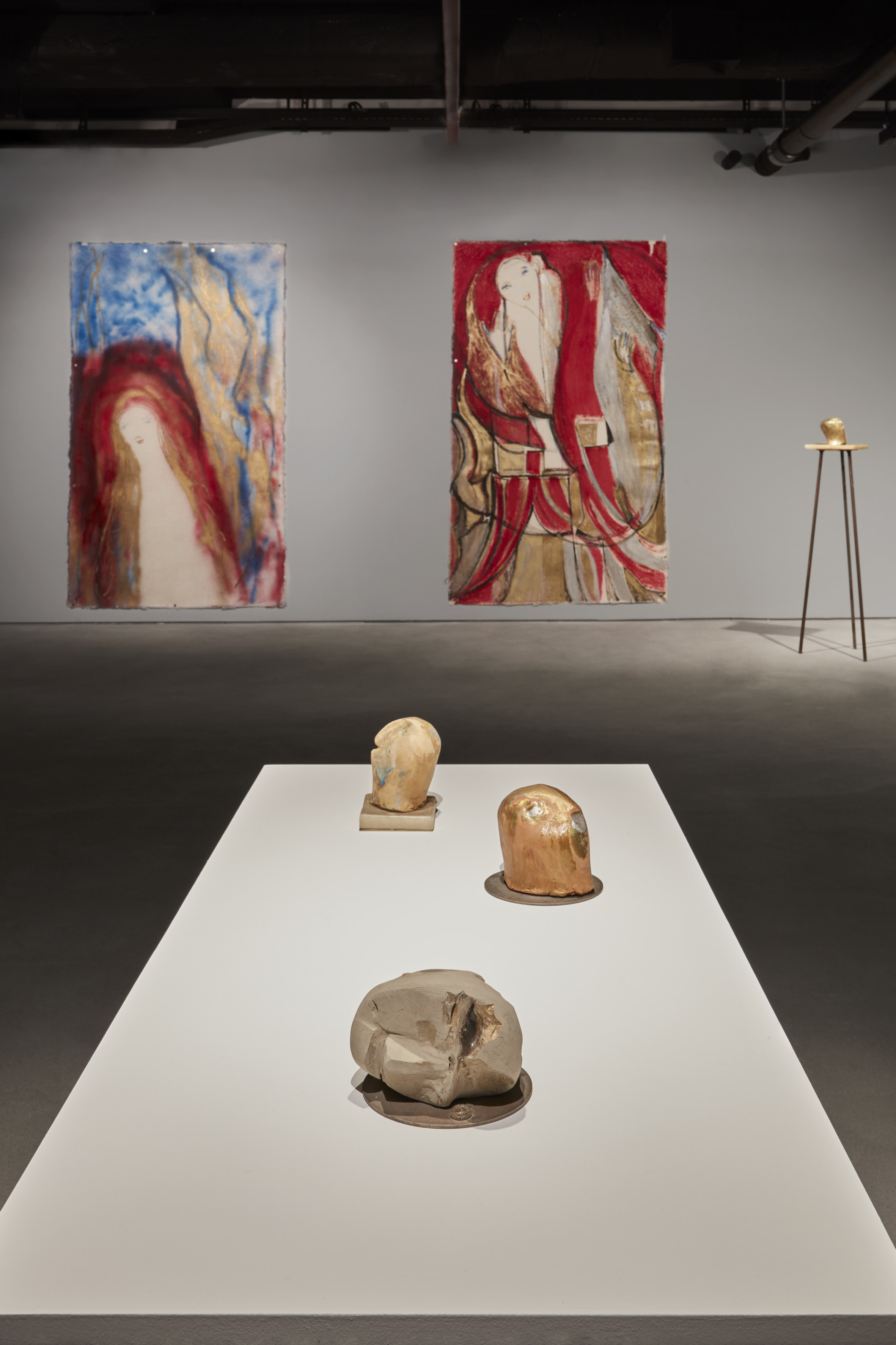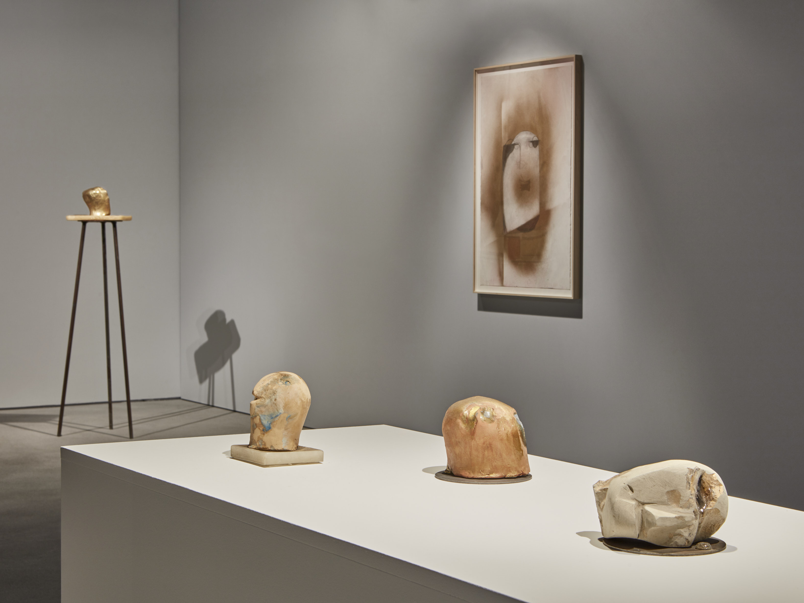 L’esposizione riunisce un corpus di quarantacinque opere che ripercorrono l’intero orizzonte creativo di Marisa Merz: dal disegno su diversi supporti alla scultura in argilla cruda, dalle tessiture di filo di rame e di nylon agli oggetti trasformati in cera, nel tentativo di restituire tutte le modalità espressive proprie dell’artista. La mostra si apre con alcuni capisaldi della sua produzione; opere iconiche come Senza titolo del 1975 e la grande installazione in fili di rame lavorati a maglia, realizzata nel 1979 e da allora mai più esposta. Prosegue poi con un’ampia selezione di lavori, alcuni inediti, che comprendono disegni e tecniche miste su differenti supporti unitamente ad un raffinato gruppo delle sue celebri testine in creta, mettendo in luce una tematica ricorrente nella sua produzione, l’indagine sul volto o sulla figura».