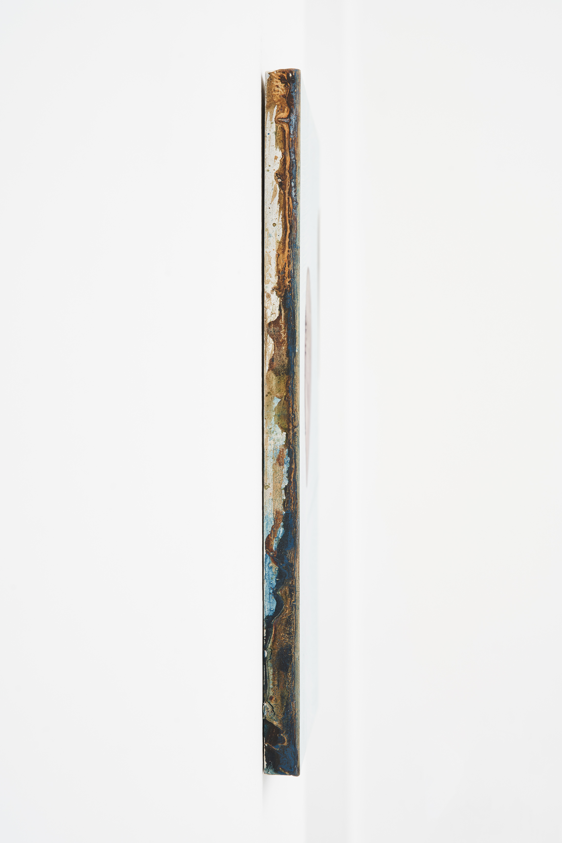 In questo senso anche i bordi dei dipinti e del supporto, con le tracce della sedimentazioni della materia pittorica ben visibili, assumono un significato rilevante.