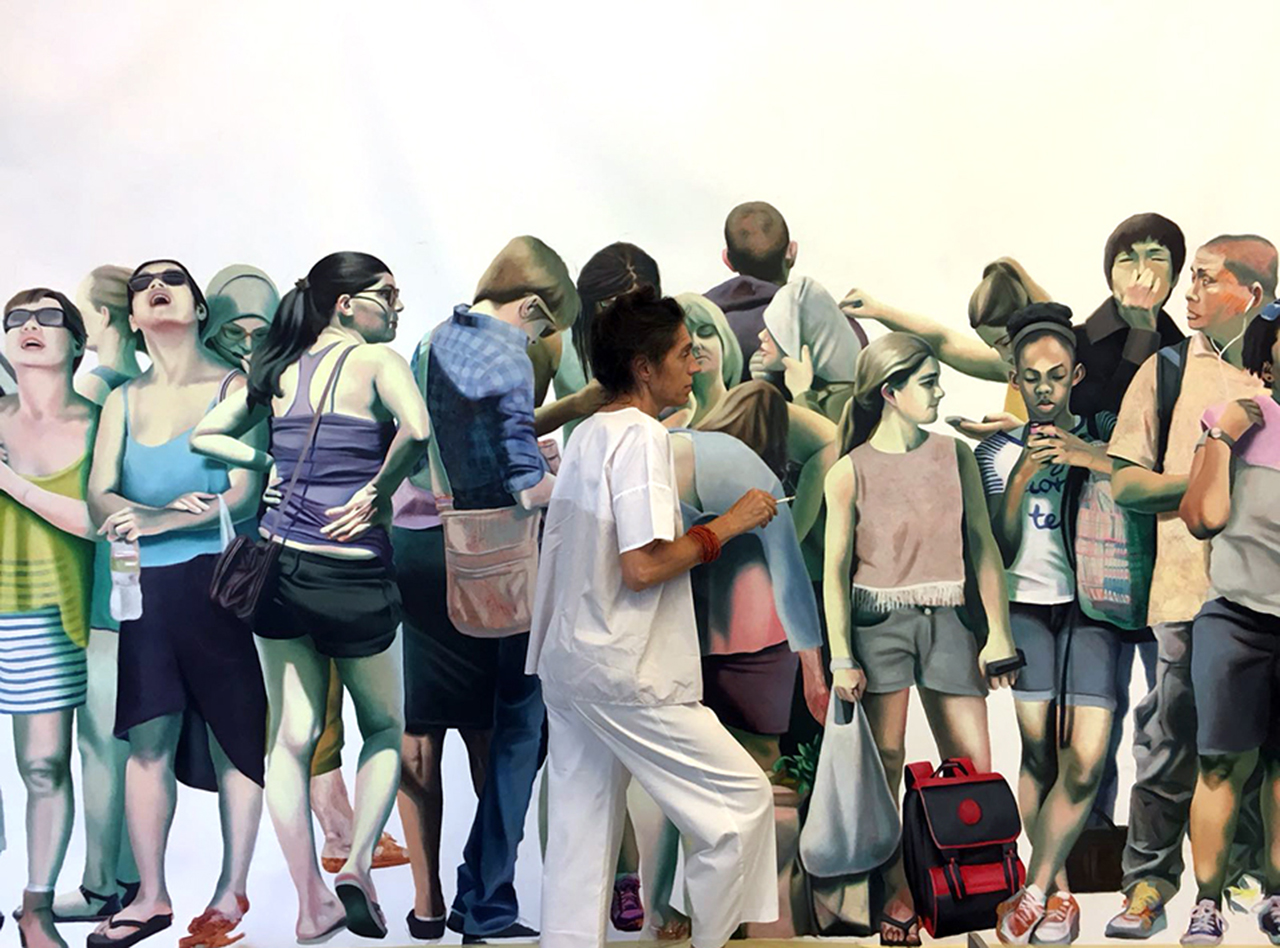 «Al piano terra invece presentiamo una selezione della produzione pittorica degli ultimi tre anni dell’artista, che restituisce e sintetizza in un unico medium la sua ricerca, mentre lavori storici come i “Tuffatori” (2004-2019), l’”Antologia delle Posizioni” (2009) e il “Manuale della figura umana” (2007) vedono una nuova configurazione arricchita e aggiornata.