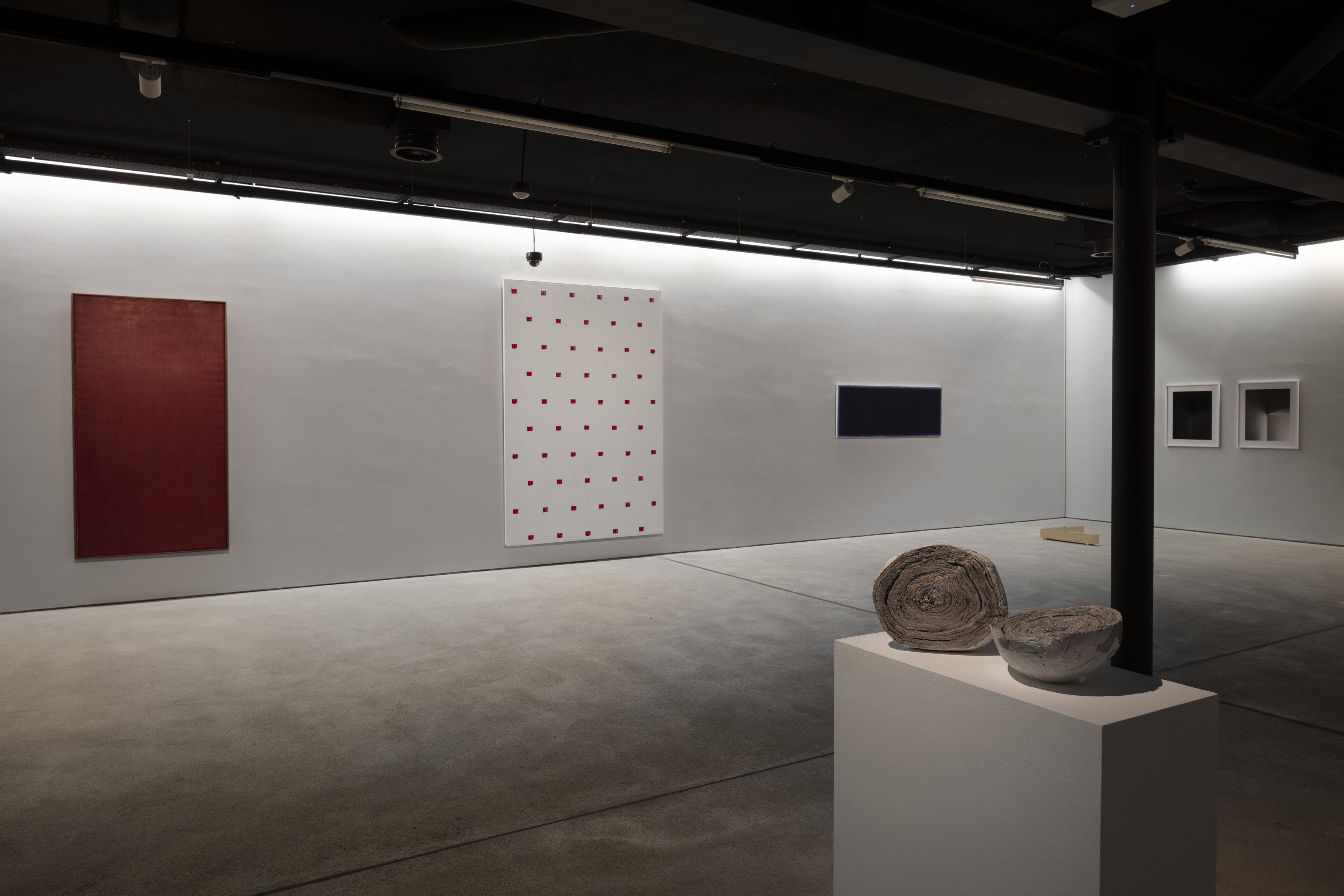 E così sfilano tra le pareti e il pavimento una serie di opere splendide che si guardano l’una con l’altra: Mona Hatoum con Ana Mendieta e Gabriele Basilico; Niele Toroni (compagno di scuola e di jazz di Giancarlo Olgiati) con Piero Dorazio e Irma Blank, artista che secondo il collezionista possiede la stessa potenza di Yves Klein nel creare un blu meraviglioso e profondo. Con la penna a biro.