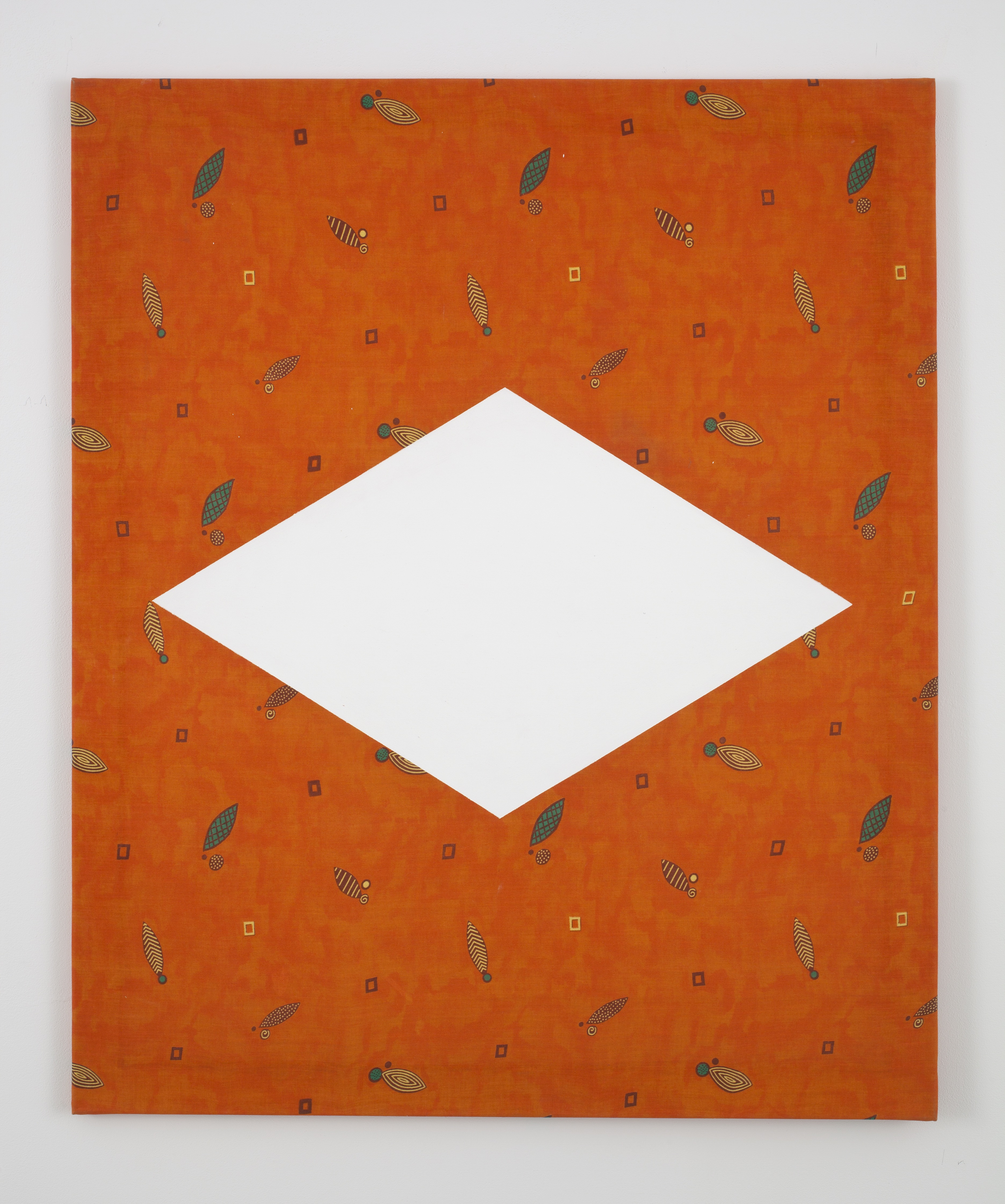 E poi i Diamond Paintings (2003) che vengono dallo studio dell’artista di New York. Si tratta di una serie di opere realizzate con tessuti acquistati in negozio, decorati con pattern prestampati che sostituiscono la tradizionale tela e divengono la superficie su cui Krebber dipinge semplici forme geometriche di rombi bianchi. Con questo lavoro, Krebber smitizza in maniera sistematica, come d’altra parte suggerisce il titolo della serie, la centralità del soggetto e della tecnica in pittura, suggerendo invece uno spazio aperto all’interpretazione e al dubbio».