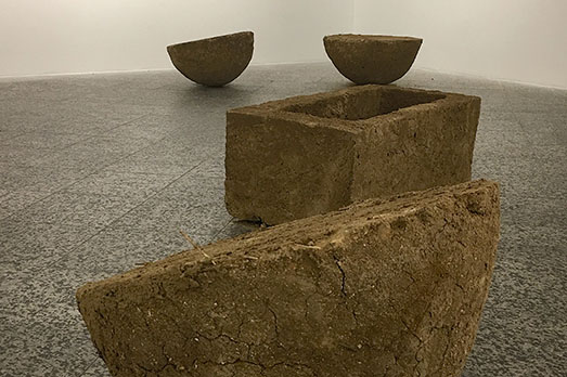 Al primo piano ho messo in dialogo l’installazione sonora “The density of the transparent wind” con una serie di sculture inedite realizzate in terra cruda (prodotte in Sardegna, utilizzando terra, argilla, paglia e sole dell’isola). Cerco così di far dialogare due lavori differenti nella convinzione che, l’apparente diversità tra le cose, sia sempre una sfida costruttiva, un modo di guardare alla realtà multisfaccettata qual è quella del mondo contemporaneo».