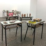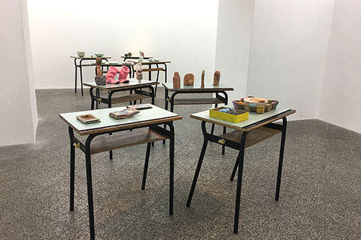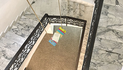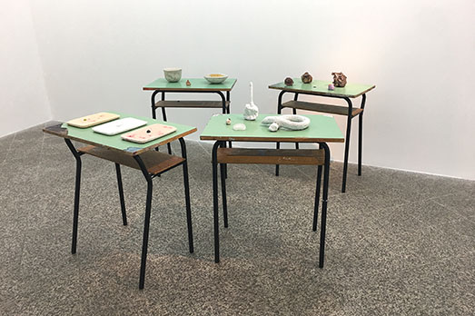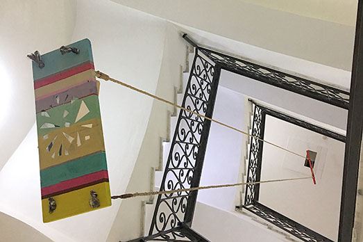 «In questa mostra presenterò al piano terra una nuova installazione del ciclo “Janas Code” con sculture poste su dei vecchi banchi di scuola. Nelle scale, come trait d’union tra il piano terra e il primo, l’installazione verticale “Life Swing”: un’altalena sospesa che fa oscillare il libro “la questione sarda” di Antonio Gramsci tra passato, presente e futuro, a conferma dell’attualità della questione meridionale e sarda in particolare, nonché del pensiero gramsciano a cui lavoro da anni.
