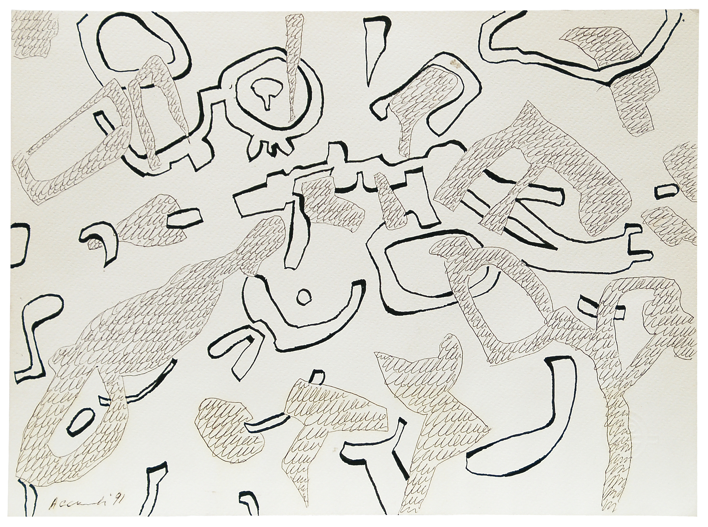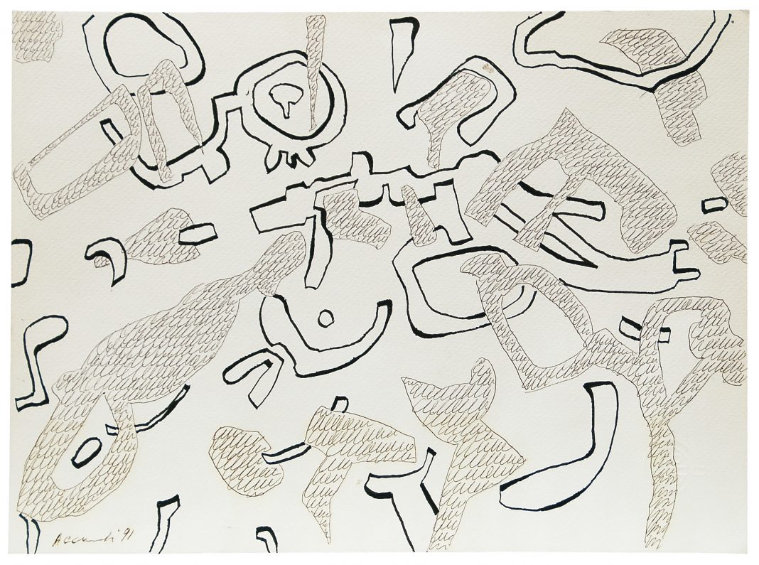Carla Accardi, Chiaro-scuro n. 6, 1991, china, penna e acquerello su carta, 23.9 x 32.9 cm Courtesy Collezione Ramo, Milano