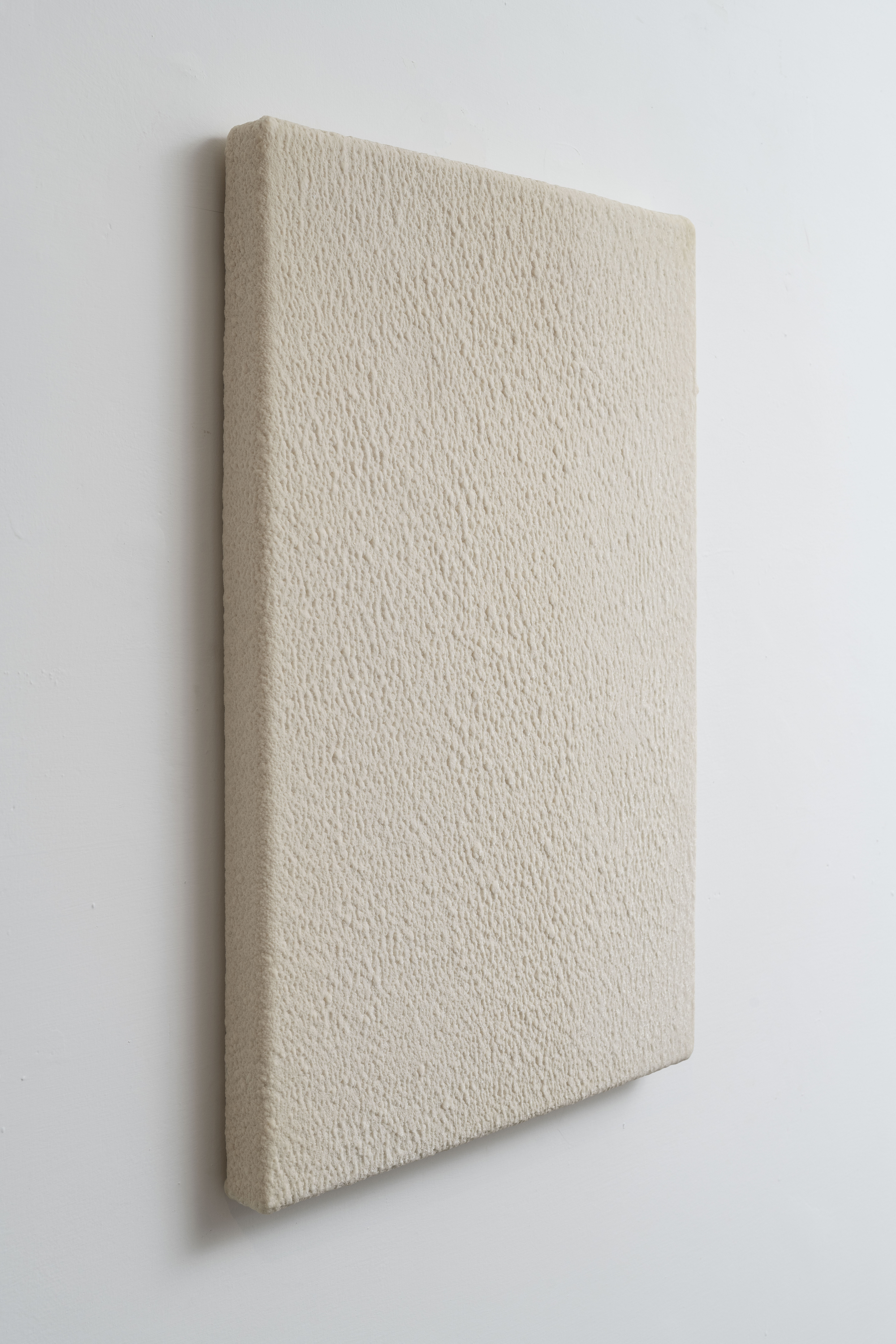 La serie Deposizione (2020) di Siedlecki è realizzata attraverso un processo di sedimentazione. Per creare le tele esposte, Siedlecki le ha immerse in una “fontana pietrificante” riempita con acqua ricca di calcio. Dopo circa sei mesi, le tele hanno accumulato in modo organico sulla loro superficie piatta cristalli di calcite che le hanno trasformate in elaborati rilievi scultorei. Qui, come in gran parte del lavoro di Siedlecki, il tempo con il suo potenziale trasformativo gioca un ruolo cruciale nel processo creativo.