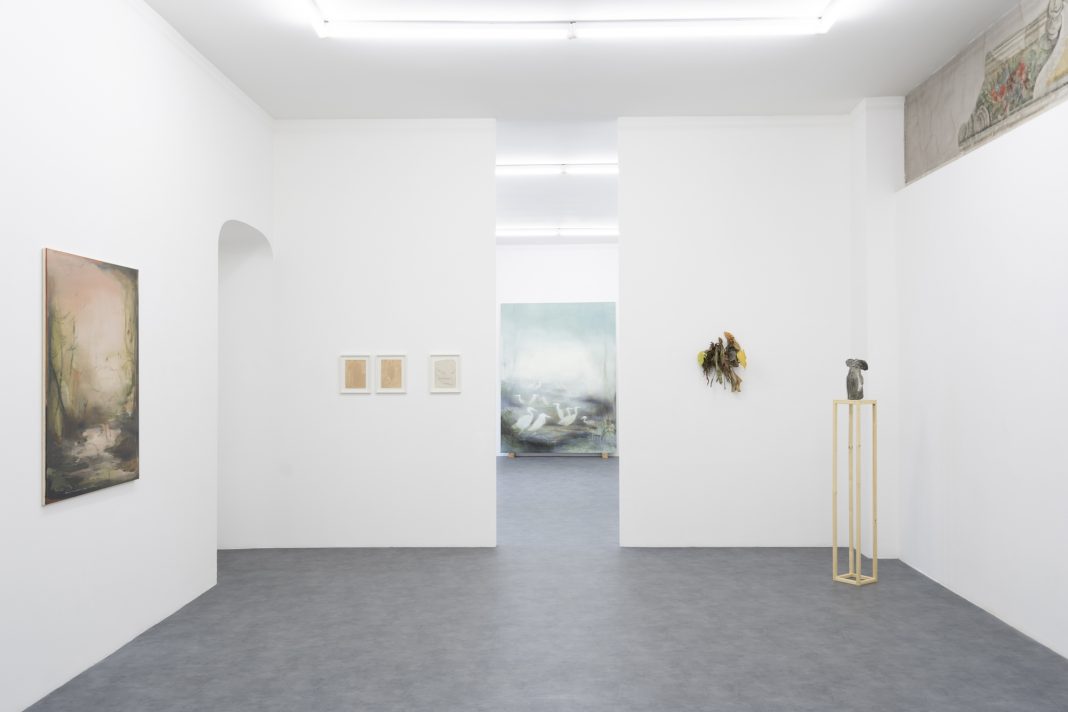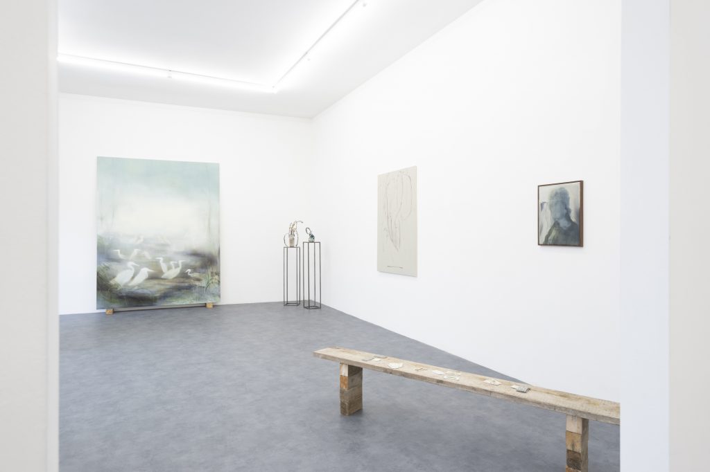 Nel percorso espositivo tra nuovi dipinti, opere su carta e ceramiche che raccontano del luogo in cui l’artista è nata, in provincia di Reggio Emilia, e a cui un paio d’anni fa ha fatto ritorno, dopo anni trascorsi all’estero.