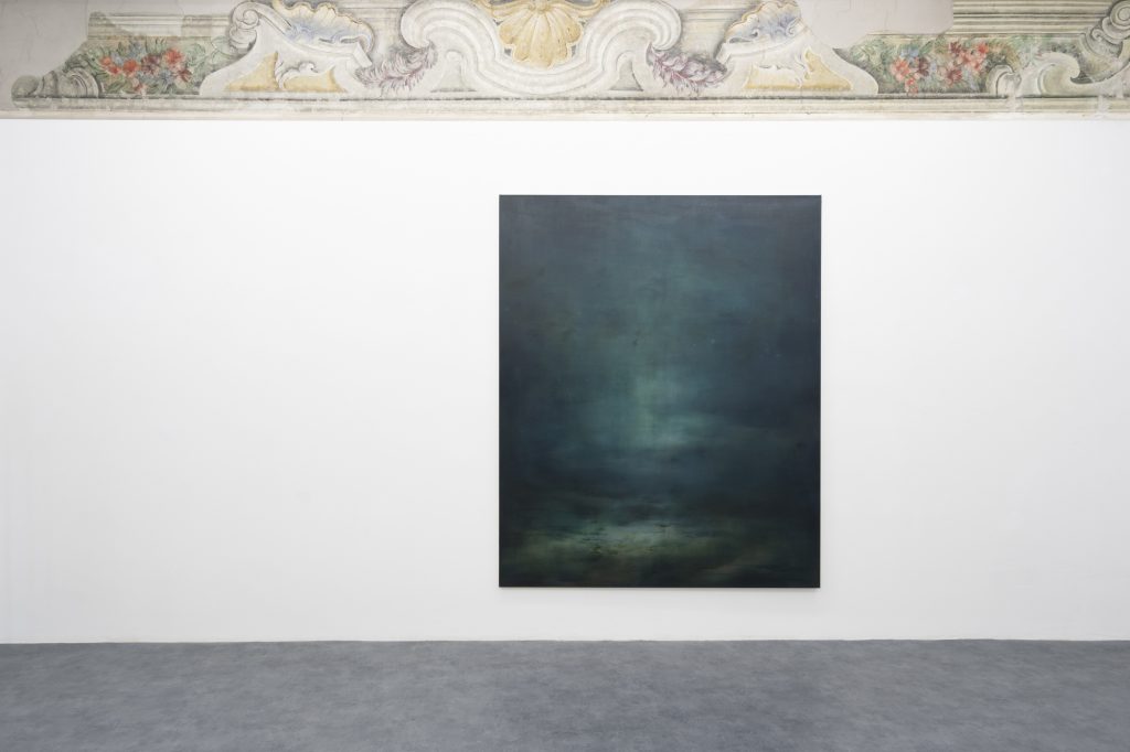 «La biografia dell’artista e il suo ritorno a casa – ha spiegato la galleria – è il nucleo attorno a cui si sviluppa l’intero corpus di opere esposte che raccontano un luogo di vita e di legami. “Pratonera” nasce dal ripensamento di immagini tipiche come la nebbia, i cancelli, le strade dritte e lunghe, i filari, gli animali, le persone, il gioco delle carte, le feste».