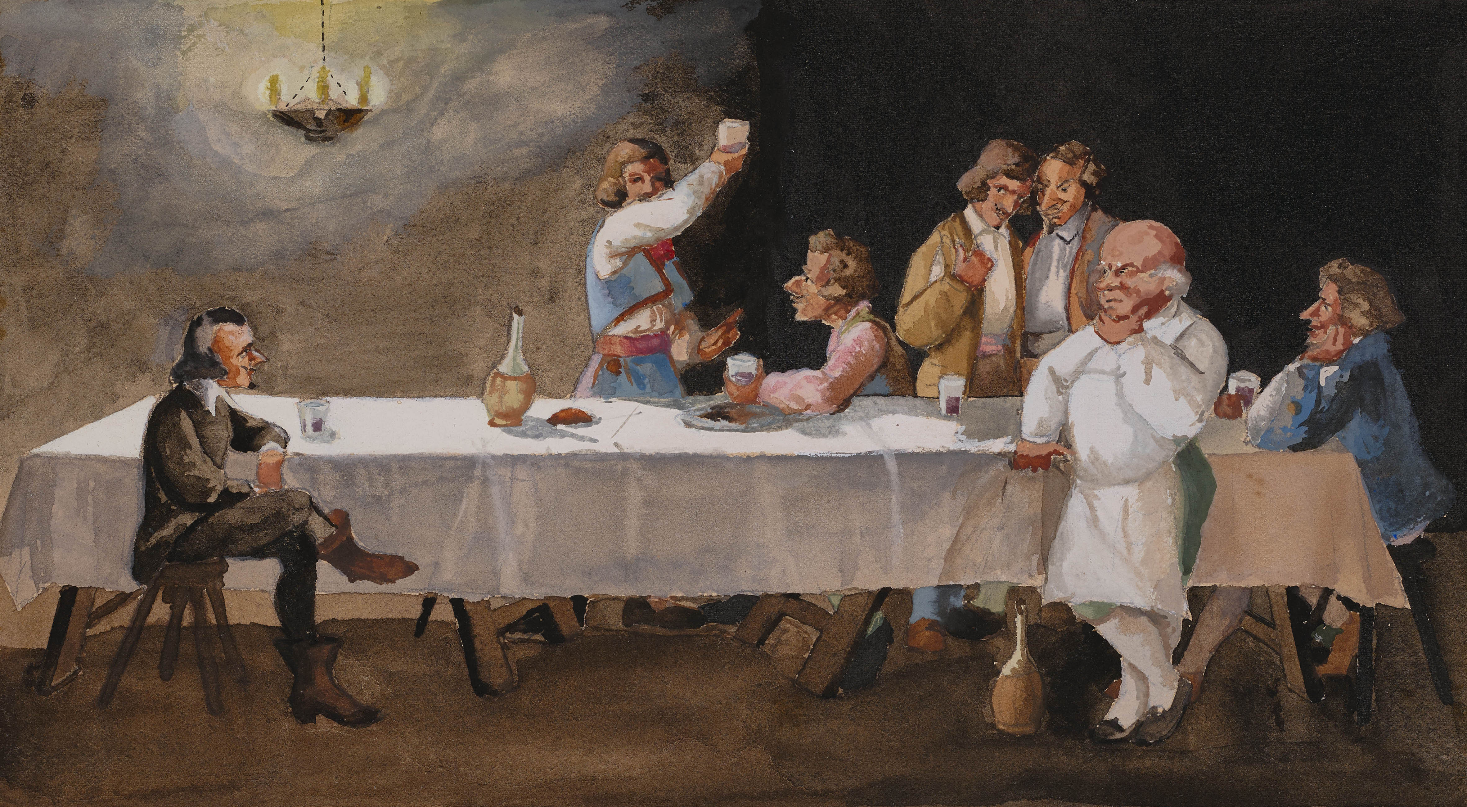 «Il percorso espositivo si sviluppa attorno tre cicli di illustrazioni dedicati a capolavori della letteratura realizzati da Marongiu tra il 1926 e il 1930: la serie completa delle tavole di Sogno di una notte di mezza estate di William Shakespeare (1930), le illustrazioni de I Promessi Sposi di Alessandro Manzoni (1926) e le tavole de Il Circolo Pickwick di Charles Dickens (1929). Quest’ultimo lavoro, composto da 262 tavole realizzate a inchiostro e acquerello, costituisce il cuore della retrospettiva: in prestito dal Charles Dickens Museum di Londra è oggi, a novant’anni dalla sua realizzazione, per la prima volta visibile in un museo italiano.