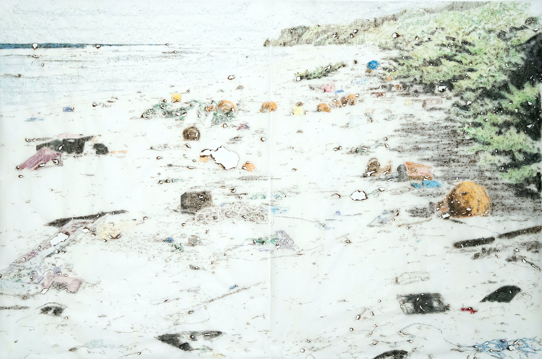 Centrali nei due nuovi cicli di lavori dell’artista, 2 degrees e Les Etrangers, sono, infatti, le tematiche dell’attualità, come ha spiegato il museo: «nelle opere del ciclo 2 grades, realizzate con la tecnica della bruciatura su carta eseguita tramite lente di ingrandimento, il tema si incentra sulle conseguenze del surriscaldamento globale. Cantoni pone l’accento su come tali problematiche debbano uscire dai salotti della politica internazionale e coinvolgere direttamente le persone. Le immagini, fragili per effetto delle bruciature, dimostrano come questa piccola misura espressa in gradi – 2 – possa creare enormi differenze, portando il mondo per la prima volta davanti ad una catastrofe di proporzioni globali creata dall’uomo stesso, l’era dell’antropocene.