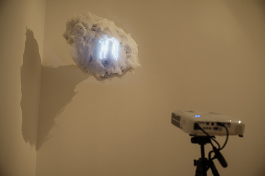 L’impatto, tra teche che raccolgono fotografie, immagini, disegni, tavole, “fantasmi” vari e tre “nuvole” fumose (una dedicata all’inquinamento nella nuova serie degli Ex Voto, proiezioni su tela ispirate dalle pitture presenti nella Chiesa della Consolata), una formatasi dallo schianto degli aerei sulle Torri Gemelle, e una “scultorea” che volteggia nell’aria con proiezione annessa, è quello di una camera delle meraviglie decisamente ricarcata.