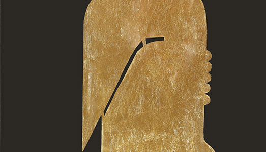In alto e in homepage: Il guerriero, tecnica mista acrilico e foglia oro, 40×40, collezione privata Palermo