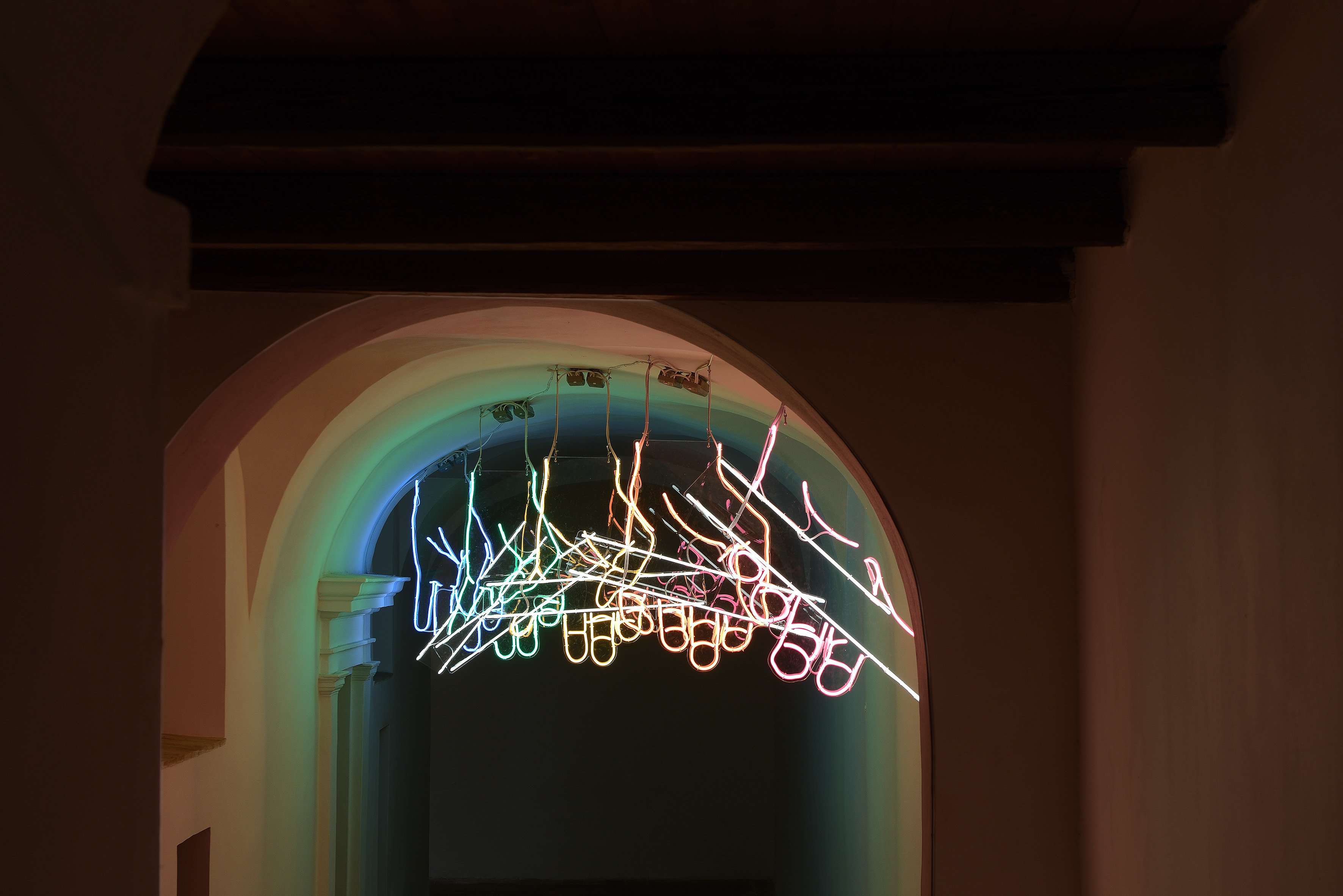«”The Relay” – ha spiegato il curatore Marcello Smarrelli nell’intervista qui sotto – è stata progettata per l’ingresso del Museo Premio Ermanno Casoli 1998 – 2007, che inaugurerà oggi – grazie al Comune di Serra San Quirico e alla Regione Marche che ne hanno finanziato l’allestimento – e in cui sono esposte le opere vincitrici delle prime dieci edizioni. “The Relay” funge da trait d’union tra la prima fase del premio, che va dal 1998 al 2007, e la seconda fase, avviata nel 2007 con l’istituzione della Fondazione Ermanno Casoli e la mia direzione artistica».