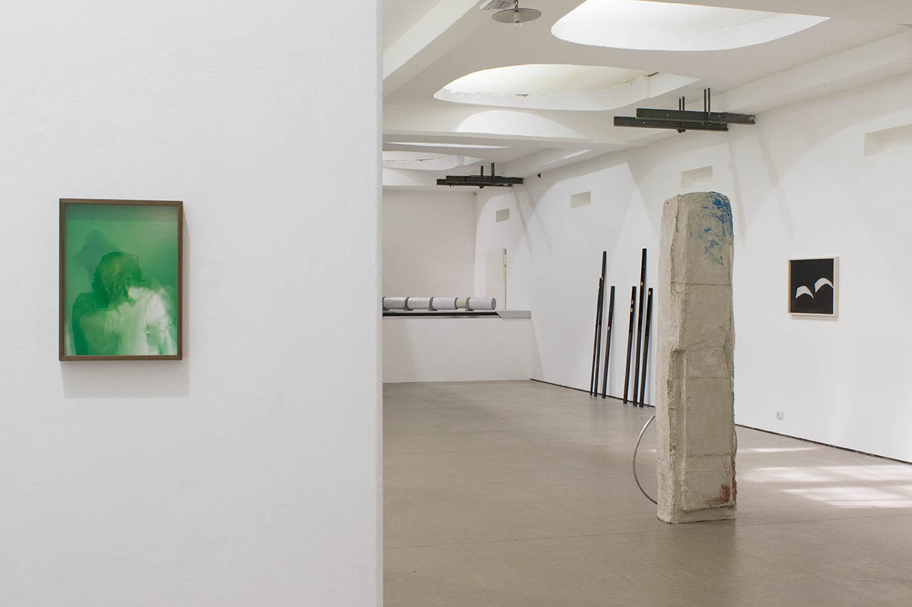Un primo motivo è quello che indaga il rapporto fra la scultura e il tessuto. L’elasticità della stoffa permette a una forma scultorea di essere plasmata più e più volte, entrando costantemente in contatto temporale con lo spazio. Anche se i confini non sono netti, possiamo attribuire a questo motivo l’opera di Franz Erhald Walter che riconosce e fissa un punto storico originario e quelle di Marion Baruch, Philipp Gehmacher, Sara Enrico, Davide Stucchi. La scultura-pittura di Andrea Kvas introduce un altro motivo della mostra legato alla vita scenica della scultura e dell’oggetto. È in compagnia dell’opera totemica di Ester Kläs, della fotografia di Alessandra Spranzi e della macchina-scultura di Alessandro Di Pietro. Le opere di Tania Perez Cordova si propongono come oggetti instabili, parte scultura e parte evento, propongono sconfinamenti linguistici e repentini rientri nei ranghi. Il processo trasformativo è presente anche nell’opera di Nicola Martini come nell’autoritratto di Francesco Gennari che segnala il motivo centrale della mostra, indicando le potenzialità espressive dell’incontro fra il tempo (l’azione, il movimento) e lo spazio».