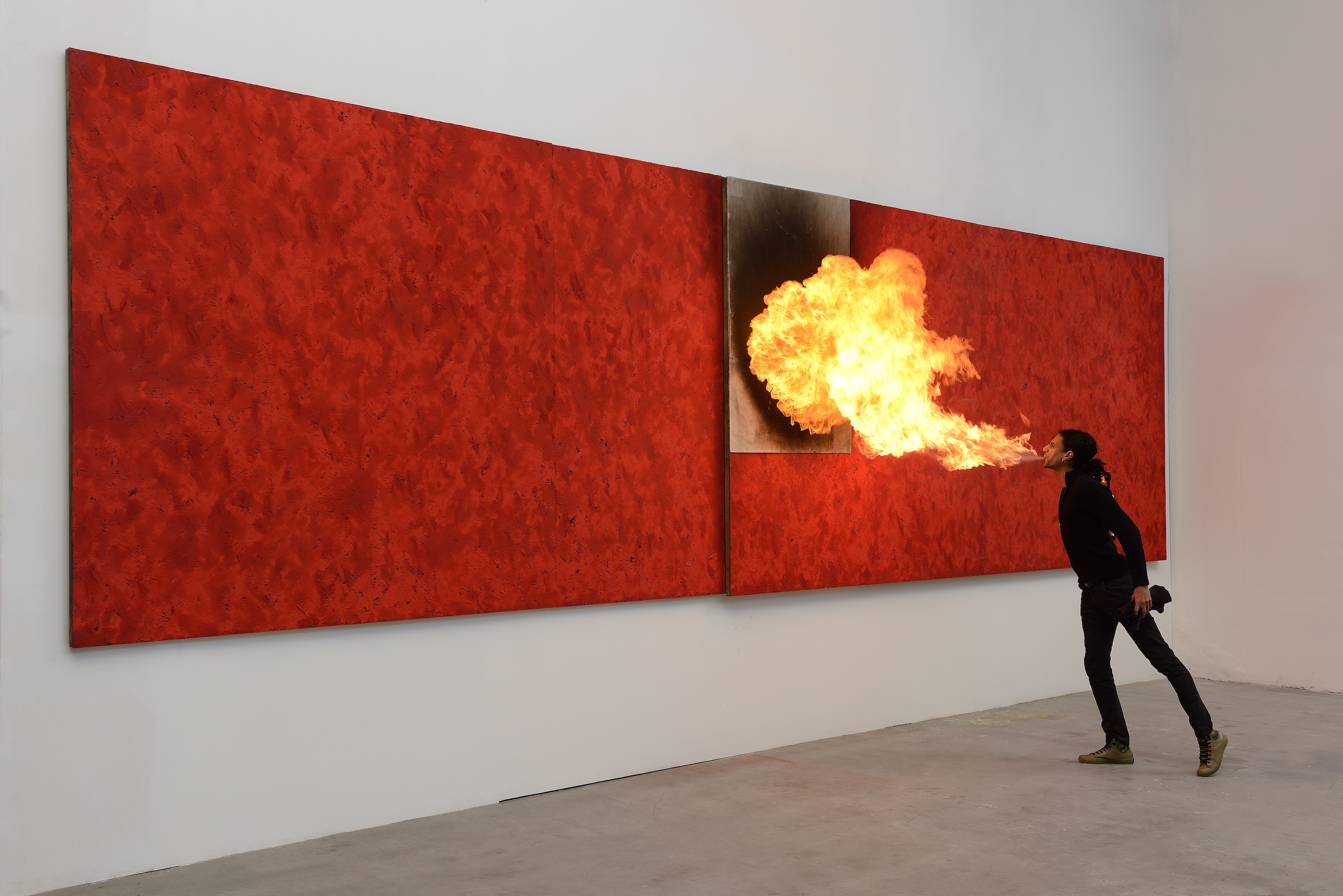 «L’artista ha definito la sua una “pittura di ascolto”, un esercizio di attenzione che ha praticato dal 1965 in poi. In questo senso la mostra al Madre – sviluppata intorno alla riflessione sul mezzo pittorico da parte dell’artista – cerca innanzitutto di fare silenzio per “ascoltare”, rivolgere la nostra attenzione verso questa pittura, fino ad oggi meno studiata rispetto ad altre tipologie di opere dell’artista. Ma la mostra è anche un consapevole tentativo di riscrittura della storia dell’arte contemporanea italiana per come la conosciamo, in continuità con i principali progetti espositivi, editoriali e di ricerca organizzati dal Madre in questi anni. Calzolari è esponente, a partire dagli anni Sessanta, delle ricerche afferenti all’Arte Povera. Bonito Oliva il teorizzatore del “ritorno alla pittura” definitosi, alla fine degli anni Settanta, con la Transavanguardia. Se la prima fu intesa anche come rifiuto delle tecniche artistiche tradizionali (quali la pittura) a favore dell’uso di materiali quotidiani, ordinari e organici e di processi in tempo reale, in grado di riscrivere l’esperienza stessa del fare artistico in una dimensione critica e conoscitiva, la seconda fu intesa invece come un fare non lineare che attraversa la storia dell’arte, delle sue tecniche e dei suoi materiali, delle sue forme e dei suoi motivi ispiratori, per riproporle in un dinamico rapporto con la sensibilità contemporanea. Ripensando anche questi presupposti storiografici, ed analizzando le loro possibili e molteplici relazioni, questo progetto diviene uno strumento di ricerca volto a approfondire una pratica complessa, quale appunto quella di Pier Paolo Calzolari, in cui la pittura non è mai “tornata” perché in realtà non se ne era mai andata… Nei suoi dipinti e disegni sono impastati insieme luce, colore, forma, materia e oggetto – per esempio nel confronto fra un monocromo rosso e una fiamma viva o fra il colore giallo e la luce che si spande da una finestra vera al centro del quadro – portando liberamente a confronto elementi e concetti apparentemente antitetici quali astrazione e figurazione, materia naturale e rappresentazione pittorica, superficie bidimensionale e oggetto o ambiente tridimensionali, dimensione visuale e performativa (restituita come in un tableau vivant da attori ma anche dalla presenza di motori ghiaccianti, voci registrate, trenini o carrelli in movimento). La pittura, per Calzolari, è davvero come una farfalla (titolo della mostra e dell’opera che, come un’effige, la introduce): una lieve forma-colore che si libra nello spazio e nel tempo in cui anche noi co-esistiamo, senza un punto di appoggio se non la volontà di capire come rappresentare il mondo nella sua fuggevole essenza».