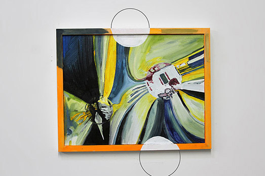In alto: Adam Berg, Heidegger with Celan, 2018 olio su tela e disegno su muro, cm 48×55