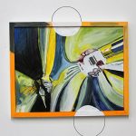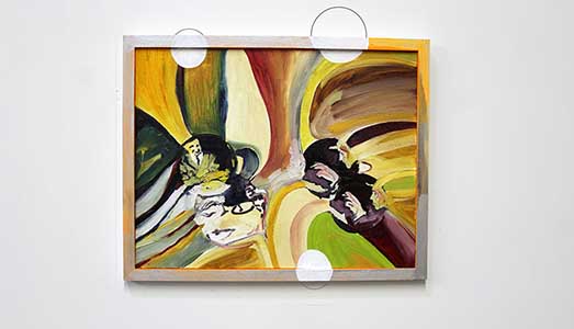In alto: Adam Berg, Heidegger with Celan, 2018 olio su tela e disegno su muro, cm 48×55