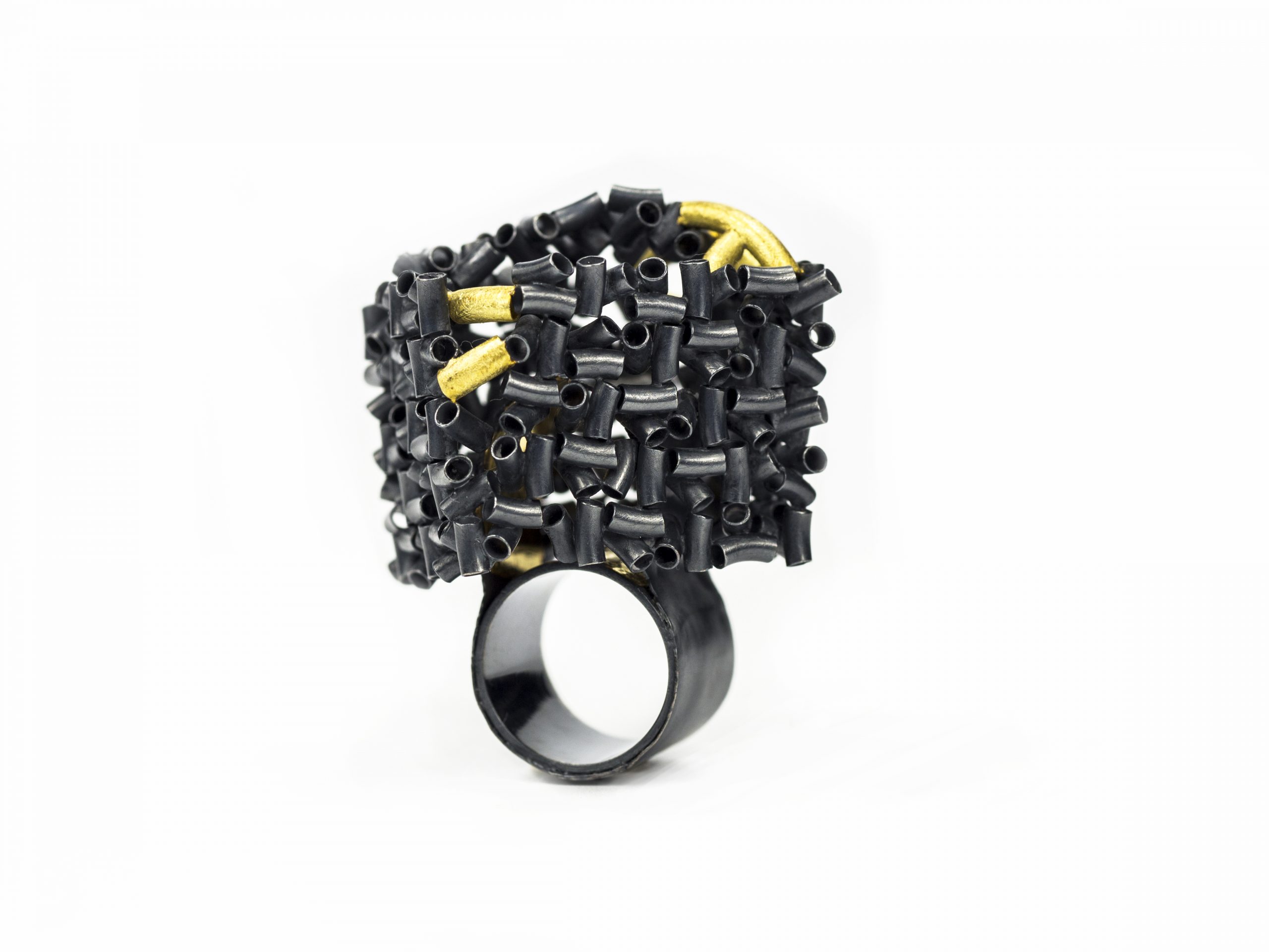 «È una designer di gioielli proveniente dalla Cina. Ha studiato alla Northwestern Polytechnical University di Xi’an, con un Master in Gioielleria e Belle Arti al Savannah College of Art and Design negli Stati Uniti. Con le sue complicate costruzioni in argento e oro, Yang ci invita a tuffarci nella profondità più oscure della psiche umana».