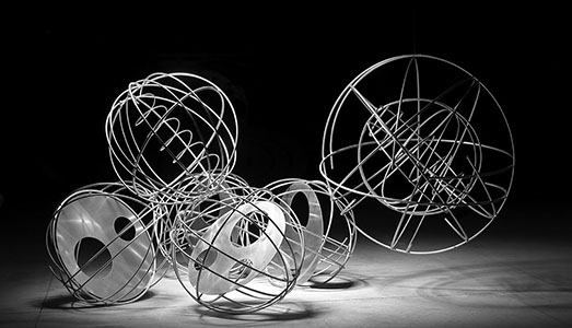 Un’affinità elettiva unisce, quasi simbioticamente, l’opera di Zorio con quella di Mattiacci. All’elemento dell’aria, ai campi di forze magnetiche non solo terrestri, ma anche a quelle più distanti di origine cosmica, all’invisibile e impalpabile flusso di energia che ci circonda, è concentrata da diversi anni la ricerca artistica e epistemologica di Eliseo Mattiacci. La sua percezione compositiva è orientata verso il cosmo. Nel ciclo produttivo che ne è scaturito, le sculture rappresentano l’esito della visualizzazione di quei mondi siderali che, se anche possono ancora sfuggire alle più sofisticate apparecchiature tecnologiche, non eludono tuttavia il pensiero creatore dell’artista. Egli ne avverte la presenza e li restituisce nel linguaggio a lui più connaturale, quello della materia plasmata. La frenetica attività di osservazione spaziale da lui svolta con l’entusiasmo del neofita, lascia trasparire la sua ansiosa attesa di una sconosciuta rivelazione che lo possa condurre a nuovi, rabdomantici, esperimenti in scultura, in un rinnovato approccio tra materia ed energia dagli inediti esiti estetici.