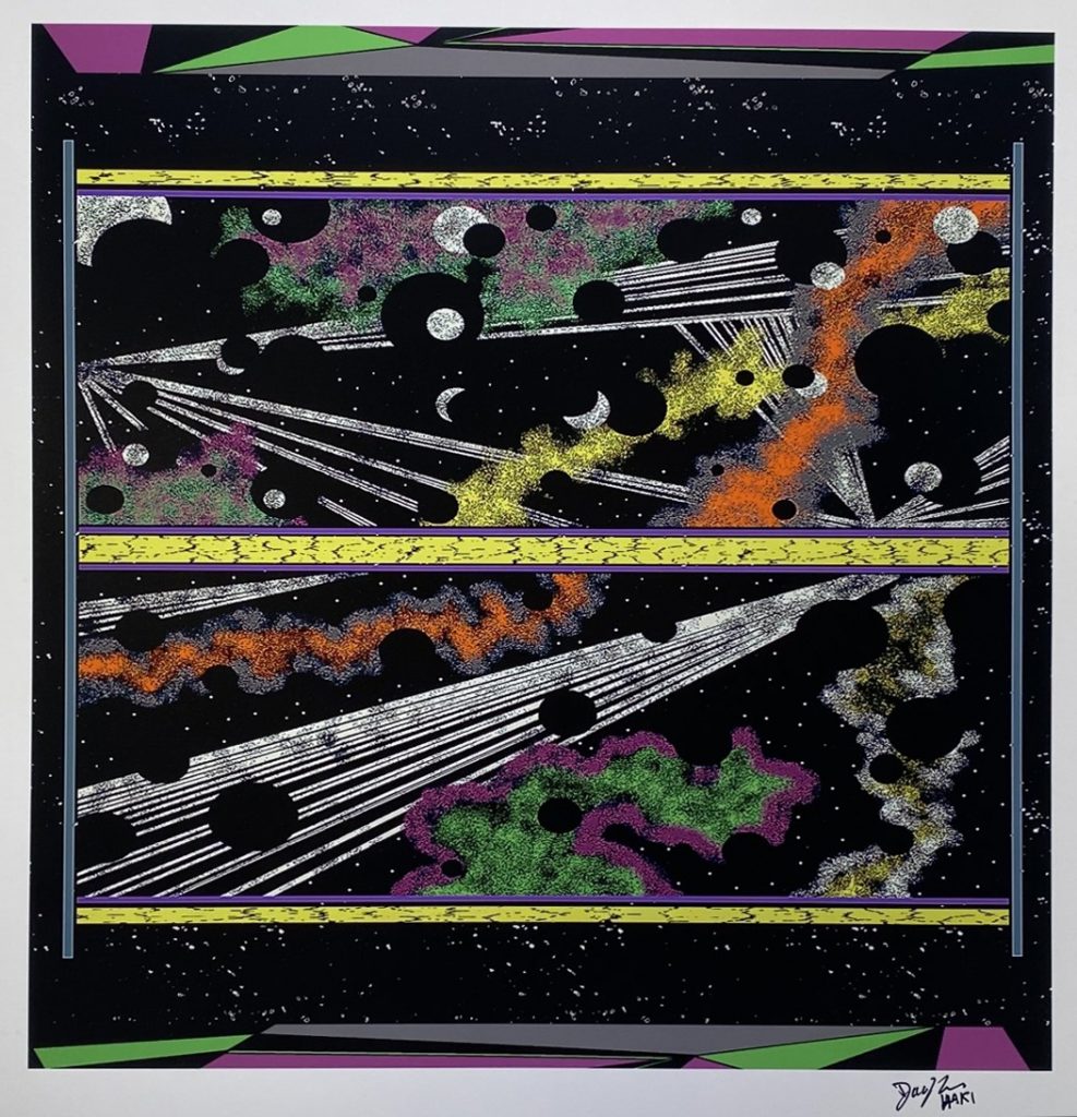 La curatrice racconta che «nell’arte di Domenico Giaquinto è la materia l’assoluta protagonista che egli conosce profondamente e che la evidenzia con una dinamica strutturale e con una resa formale di notevole temperamento. La sua tecnica policroma, ottenuta mediante l’utilizzo di piccole tessere in gesso dalla forma quadrata, rappresenta un processo creativo originale». Prosegue approfondendo la ricerca, che « per l’artista Dario Frascone è di fondamentale importanza nel suo iter, egli fa compiere all’osservatore un viaggio fantastico tra irrealtà e realtà in cui immagini animate da ritmi formali, luci e spazi vivono magistralmente attraverso una composizione del tutto originale pregnante di meditazione. Le opere disegnate a mano e poi successivamente sviluppate in digitale».