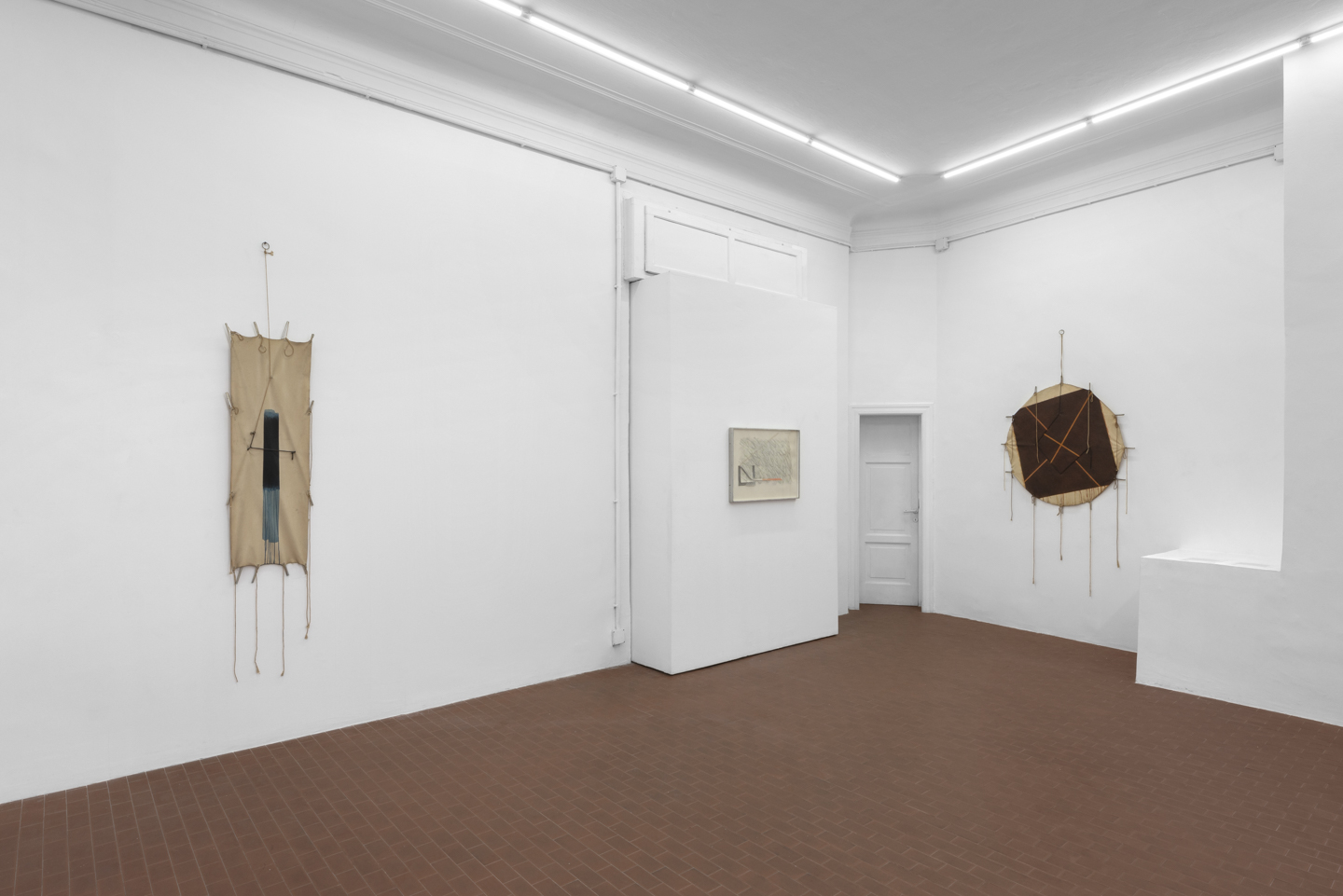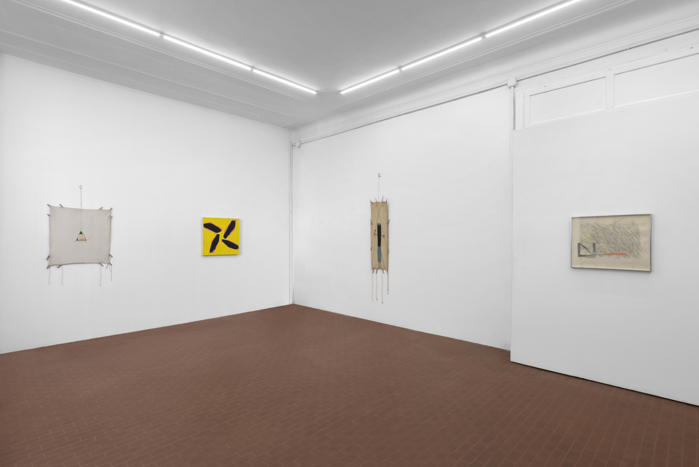 «Si è creato un dialogo tra gli anni ’70, più analitici e poetici, caratterizzati da opere che sembrano “aquiloni”, tele tese tra tubolari in alluminio e stringhe, opere singolari che abbiamo voluto far dialogare con il periodo degli anni ’90, più pittorico, dove la struttura scheletrica delle opere degli anni ’70 sembra essere subordinata alla superficie della tela.