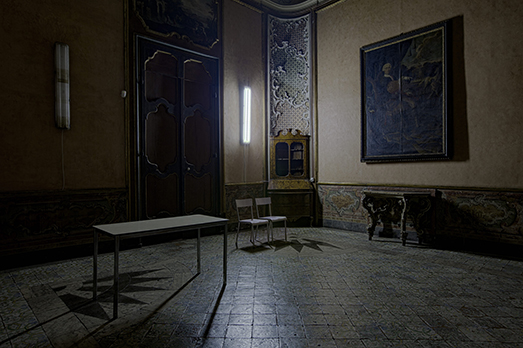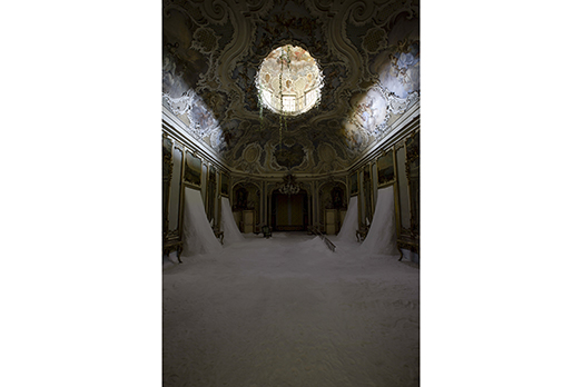 Nonostante la ventata di contemporaneo che da tempo gonfia le vele a Palermo dell’intelligente politica culturale di Leoluca Orlando, Catania tuttavia conferma la sua naturale vocazione di timoniere dell’isola attraverso i flutti agitati della ricerca artistica dei nostri giorni. Primato, quello catanese, non certo conseguito, fino a oggi, a opera di un’amministrazione pubblica attenta e sensibile che, anzi, ha preferito più mostre del tipo “blockbuster”. E, al riguardo, speriamo che la nuova giunta della città di sant’Agata, fresca di insediamento, imprima una decisa virata verso ben altri lidi. Lungo una rotta che negli ultimi anni è stata già tracciata da un manipolo di privati locali. Volitivi, coraggiosi, sognatori. Tra realtà profit e no-profit. Dalla galleria Collicaligreggi alla Fondazione Brodbeck, dalla Fondazione Oelle a Radicepura, da BOCS (Box Of Contemporary Space), il primo “artist run space” di Catania, a Ritmo, uno spazio indipendente situato nel quartiere storico della “Fera o Luni”. Tra questi c’è una new entry. Il suo nome è unfold, associazione culturale con sede a Palazzo Biscari, fondata dal giovanissimo Pietro Scammacca. Proprio a quest’ultimo si deve l’installazione site specific di Gian Maria Tosatti (Roma, 1980) intitolata “Il mio cuore è vuoto come uno specchio – episodio di Catania”. Così Palazzo Biscari, una delle più importanti residenze barocche della Sicilia, ha aperto le sue porte all’arte contemporanea. Con un progetto ambizioso, curato da Adele Ghirri, Ludovico Pratesi e dallo stesso Scammacca che, in gran parte, se lo è autofinanziato. Un progetto che decisamente non è passato inosservato. A giudicare dagli ospiti del gremito vernissage, dove sono stati visti, tra gli altri, Patrizia Sandretto Re Rebaudengo, Vicente Todolì (Pirelli HangarBicocca) e Sean Anderson (MoMA). Ma entriamo nel merito del lavoro che, annuncia lo stesso Tosatti, costituisce il primo capitolo di un suo lungo pellegrinaggio attraverso l’Europa. Tra le macerie della Storia moderna che allunga ancora le sue ombre sul presente, e i germogli di un tempo nuovo, forse una Nuova Storia. Quello ordito dall’artista romano è un percorso iniziatico. E, come tale, da compiersi individualmente. Uno alla volta, come in un confessionale. Aprendo l’anta sinistra di un portone monumentale, ai cui lati spiccano dei rami cerulei (concepiti per resistere alla canicola estiva), quasi a segnalare “Terribilis est locus iste”. Luogo che si snoda dai tre grandi saloni d’ingresso fino al grandioso Salone delle Feste. Agli occhi di chi incede, alla luce fredda di neon che riempiono i primi spazi di un unico suono metallico, ossessivo, ci si imbatte in una sorte di fauce spalancata sulla post-modernità, sul modello tecnocratico (incremento della produzione col minimo costo economico) che domina la scena attuale, in compagnia dell’aumento delle disuguaglianze sociali, della depauperazione del Terzo e Quarto Mondo, del degrado ambientale, del pericolo di un olocausto nucleare, della marginalizzazione e delle ondate migratorie. Il passaggio disegnato da Tosatti sussulta tra prove di decadenza e segnali di resilienza. Mentre la penombra si infittisce man mano che le orme si susseguono, fino a deflagrare nella semi-tenebra del Salone delle Feste, trafitta solo da una luce zenitale naturale. Che si riflette sul manto di sale, sulle oltre sei tonnellate di cristalli, aggregati granulari o fibrosi, in croste e in stalattiti, che ricoprono l’ambiente in ogni suo pertugio. Non sale marino, ma estratto da giacimenti saliferi sotterranei. Un richiamo a una specie di ventre materno e, pertanto, al luogo della generazione e formazione dell’essere umano nelle sue componenti fisiologiche, psicologiche e trascendentali? Chissà. Eppure i segni ambivalenti in questo progetto sono molteplici. A partire dalla stessa oscurità, o semi-oscurità, dei luoghi. Allusione alla cenere che incupisce gli umori della città etnea, li forgia. In un’alternanza tra distruzione e resurrezione. Proprio dalle ceneri, come una fenice. Se quindi l’installazione odierna rivela, da un lato, un’inedita vague “dark”, non scevra di una certa fascinazione, di Tosatti, dall’altro conferma una sua indole neobarocca o, meglio, “BaRock” (neologismo che ho preso in prestito dal titolo della grande mostra collettiva tenutasi al Madre di Napoli “BAROCK – Arte, Scienza, Fede e Tecnologia nell’Età Contemporanea”, a cura di Eduardo Cicelyn e Mario Codognato). Perché Tosatti ripropone ormai da tempo, oltre all’accumulazione barocca di particolari, soprattutto il problema dell’estetica barocca, proprio quando si assiste ormai da tempo al ritorno delle diseguaglianze e del dominio del più forte che fa nuovamente passare di moda la fiducia nella ragione. Quando le attuali rivoluzionarie scoperte scientifiche, tecnologiche e il relativismo etico che ne consegue mettono, giorno dopo giorno, in discussione le certezze e le abitudini acquisite; mentre il fervore religioso degenera nel fondamentalismo, nell’oscurantismo e in scontri tra civiltà con massacri sanguinari. Quando, per riprendere l’analisi di José Antonio Maravall in un libro diventato un classico (La cultura del Barocco, il Mulino), “i ricchi provenienti da ogni classe sociale conducono imprese gravemente nocive per la comunità”. Tale spaesamento dell’immaginario contemporaneo risulta, pertanto, essere determinato da conflitti ideologici ed esperienze tragiche, per questioni non troppo diverse da quelle che definirono il secolo di Galileo e della Controriforma. A tal punto che, alle soglie degli anni Novanta, al passaggio nella cosiddetta postmodernità dove la mistica del mercato prendeva il sopravvento, alcuni critici cominciarono già a parlare proprio di neobarocco. Di un barocco “BaRock” che scardina il contemporaneo già dal sound della sua cultura estetica. Come quella di Tosatti, nel s