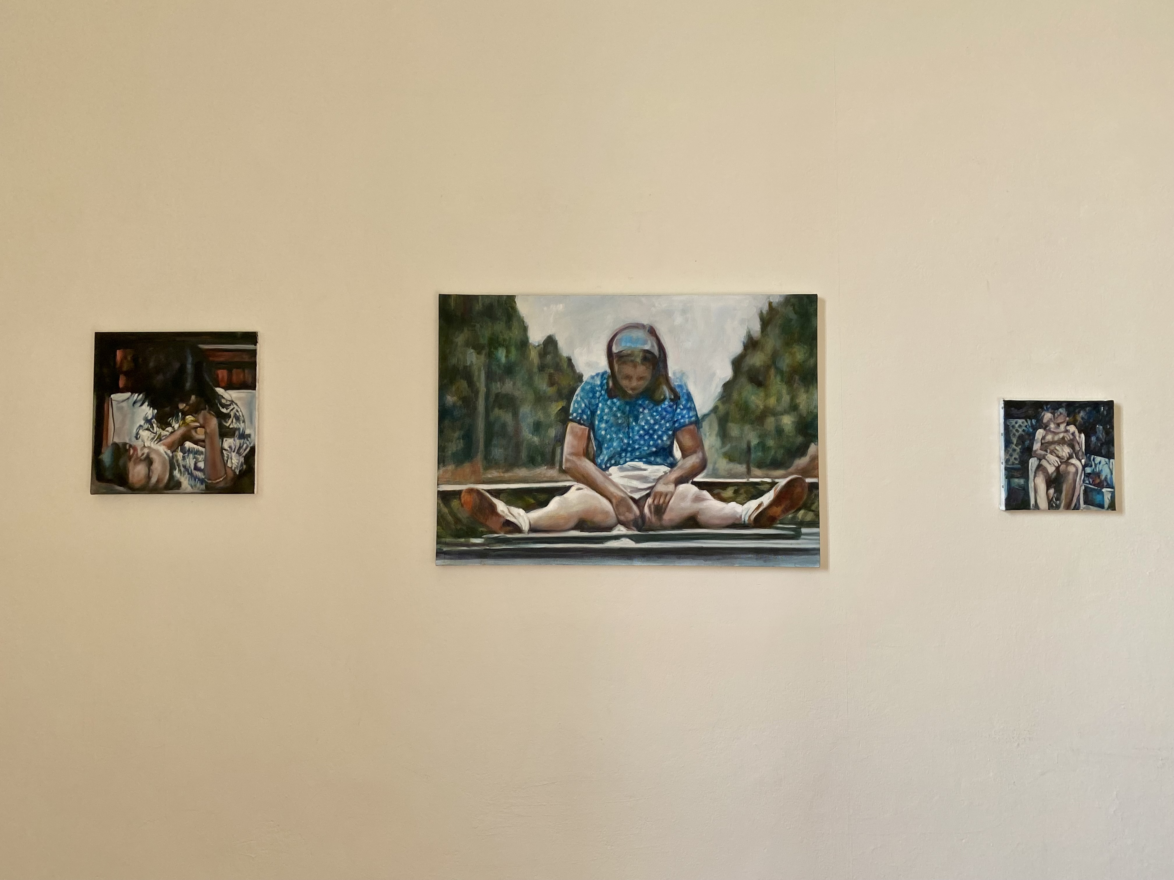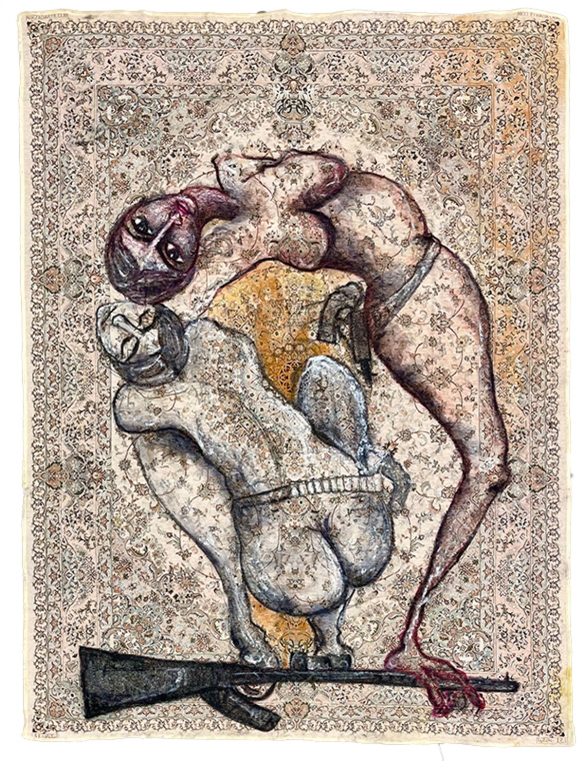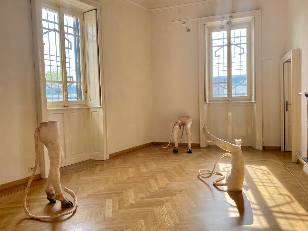 RP: «Non una, ma a tutte le opere è importate prestare particolare attenzione, la mostra infatti è anche un caleidoscopio di identità. Certamente colpiscono le grandi figure di Zehra Doğan, curda, che invadono gli spazi della casa trasferendo l’intensità drammatica e molto fisica della sua esperienza di artista e attivista nelle celle delle carceri turche. Giorgia Ohanesian Nardin, proporrà un’improvvisazione di due ore per il giorno di apertura della mostra, è di origine armene. La performance verrà documentata dalle fotografie di Iman Salem, nata in Italia da padre egiziano e madre marocchina, esposte nella veranda. Binta Diaw, nata in Italia da genitori senegalesi, presenta una serie di close up fotografici del proprio corpo sui quali compie sottili interventi pittorici. Margaux Bricler, francese, applica su se stessa l’immaginario mitologico delle Baccanti realizzando sculture mimetiche e potentemente frammentarie e sospese. Iva Lulashi, albanese, attraverso la pittura e con la novità del disegno, indaga senza remore e con voluta ambiguità, sul consumo del corpo femminile».